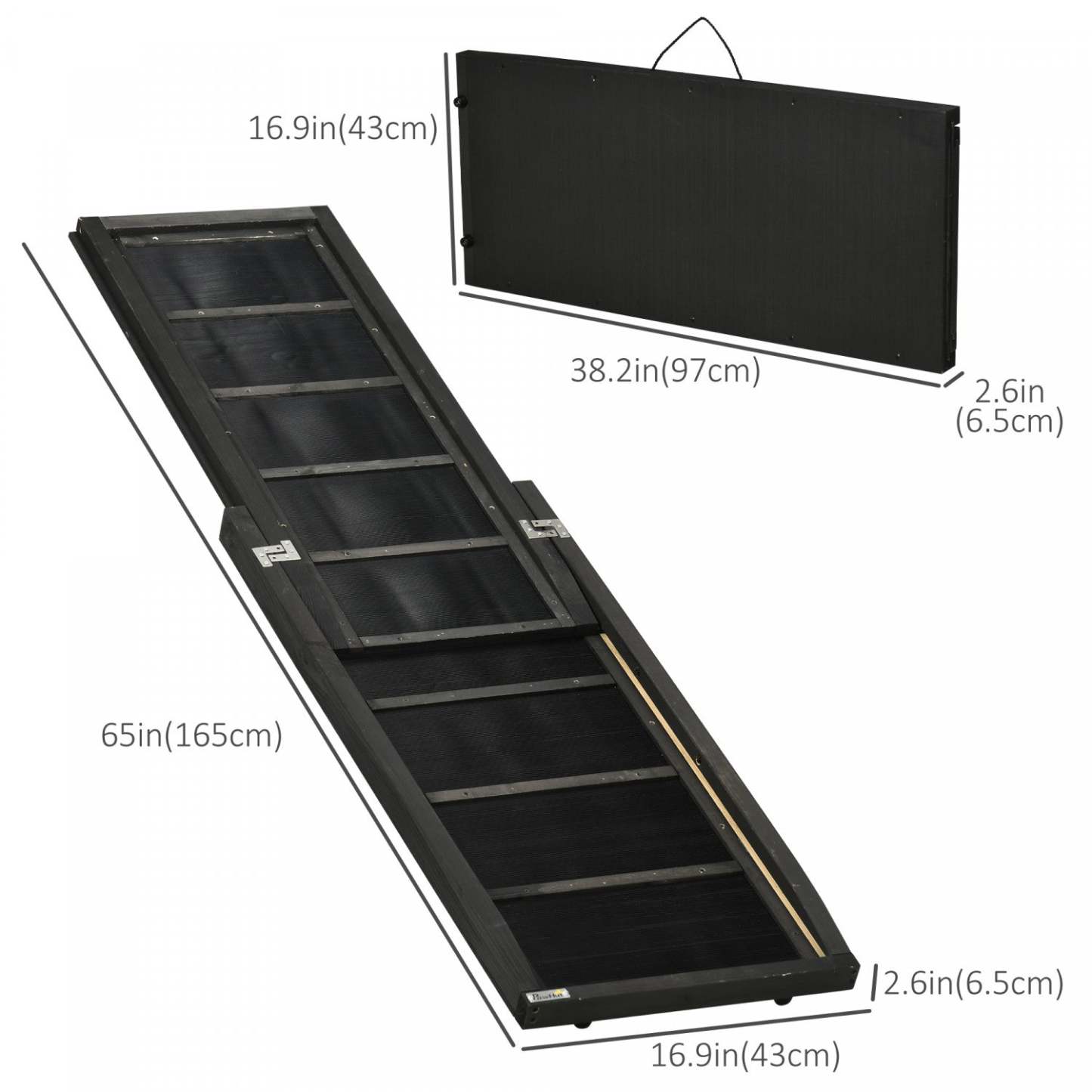 Pawhut Rampe Pliante Pour Chien, Rampe Portable Pour Animaux De 65 Pouces Avec Poignée De Transport, Rampe Antidérapante En Caoutchouc Pour Voiture