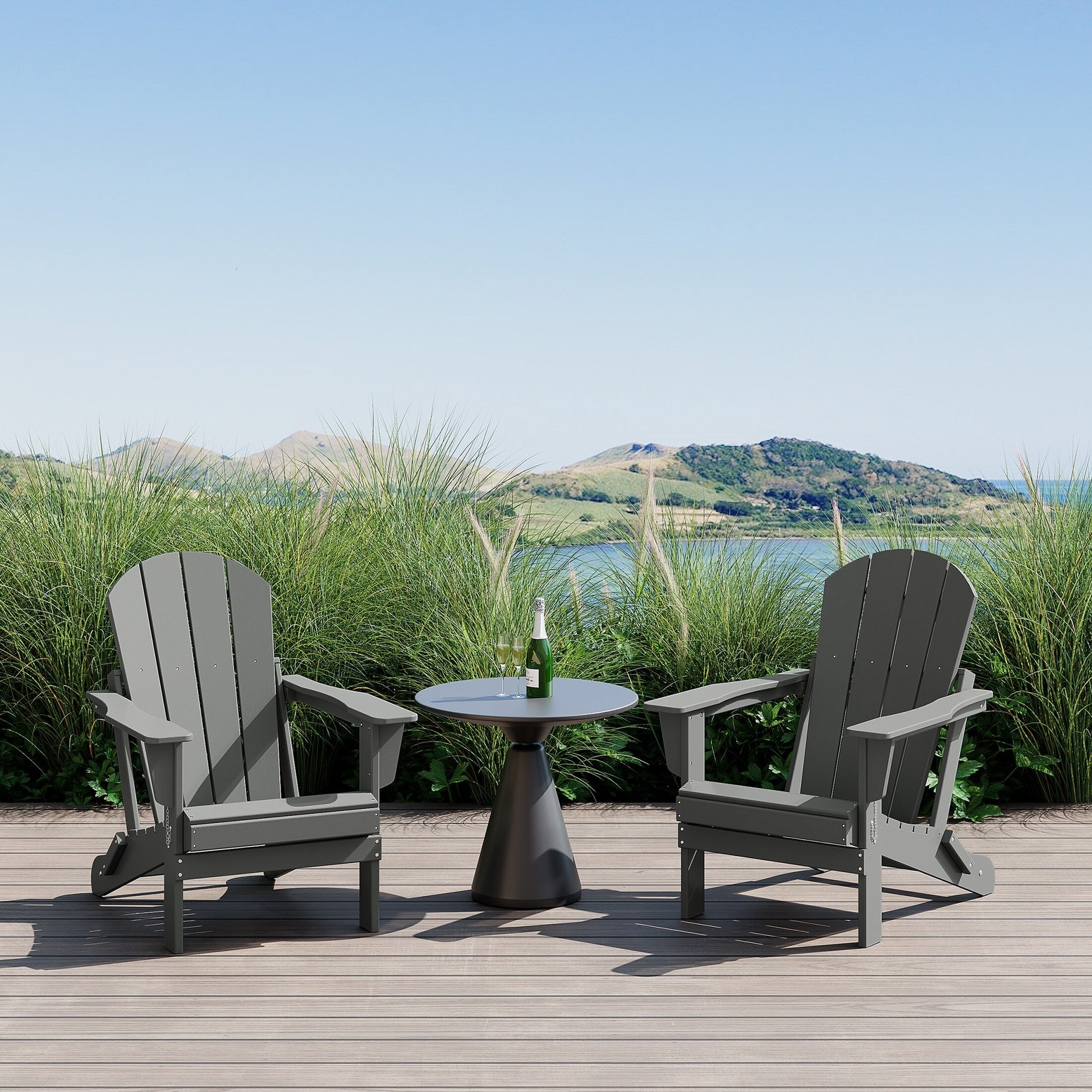 - L'ensemble comprend : deux (2) chaises Adirondack en poly