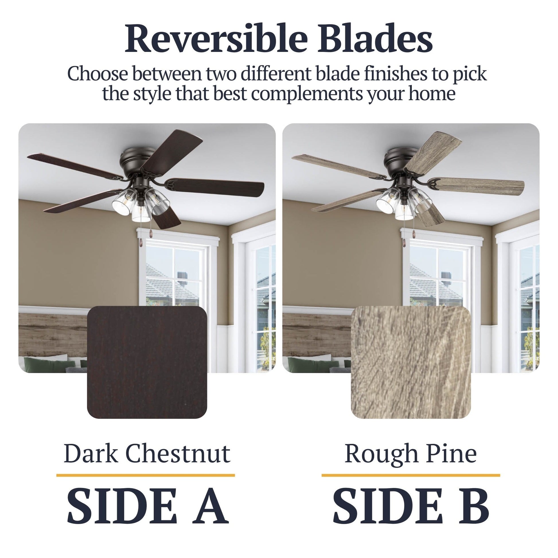 Apportez une touche de charme rustique à vos petites pièces avec le ventilateur de plafond d'intérieur Renton de Prominence Home. Ce ventilateur est idéal pour ajouter confort et style aux chambres, aux salons et autres pièces à vivre. Son design discret le rend parfait pour les pièces à plafond bas. Les pales réversibles à double finition vous permettent de choisir entre Châtaignier foncé, Pin brut ou Chêne blanc et gris pour s'harmoniser avec votre décoration. Profitez de la praticité des chaînettes pour une mise en marche et un arrêt faciles, ainsi que du moteur réversible pour une utilisation toute l'année. De plus, grâce à la garantie à vie limitée du fabricant, vous pouvez acheter en toute sérénité.