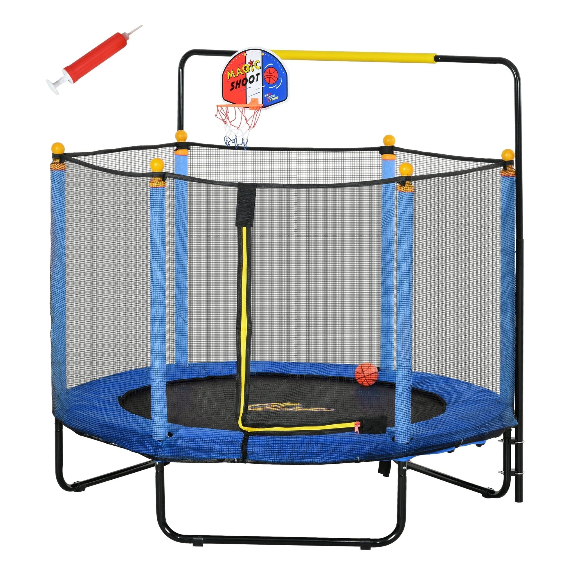 Trampoline Qaba 4,6' pour enfants avec panier de basket, barre horizontale, trampoline d'intérieur 55 pouces avec filet