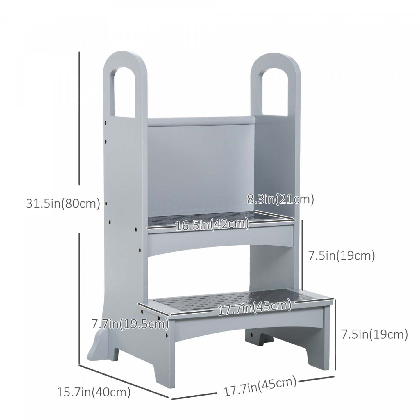 Qaba Marchepied 2 Étapes Aide Cuisine Enfant Avec Poignées De Soutien Et Tapis Antidérapant Pour Cuisine, Salon|Qaba Marchepied Avec 2 Marches, Poignées De Soutien Et Marchepied Antidérapant En Bois Dur Pour Adulte