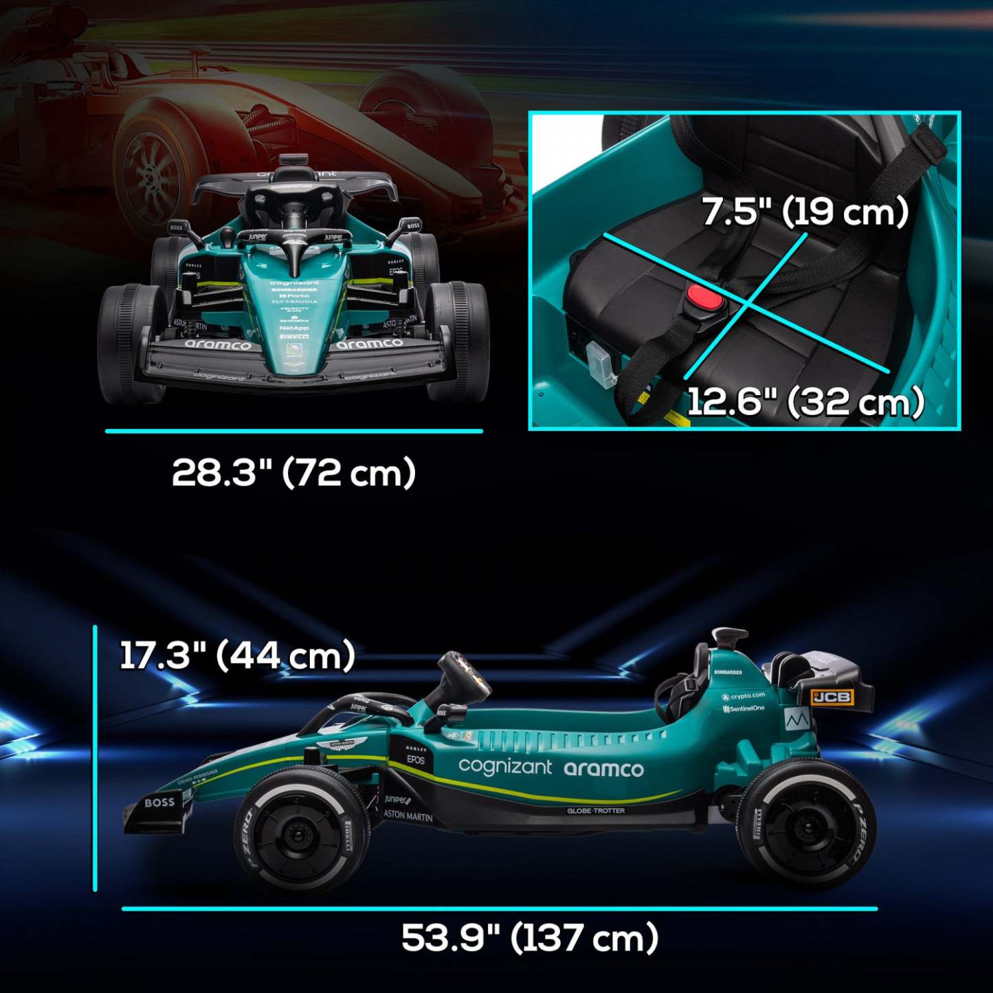 Qaba Powered Ride-On Aston Martin F1 Team Amr23 Licensed Electric Go Kart, 12v 3 Mph Kids Ride On Ca|Qaba Kart Électrique 12 V Pour Enfants Avec 4 Roues Absorbant Les Chocs, Voiture De Course Extérieur