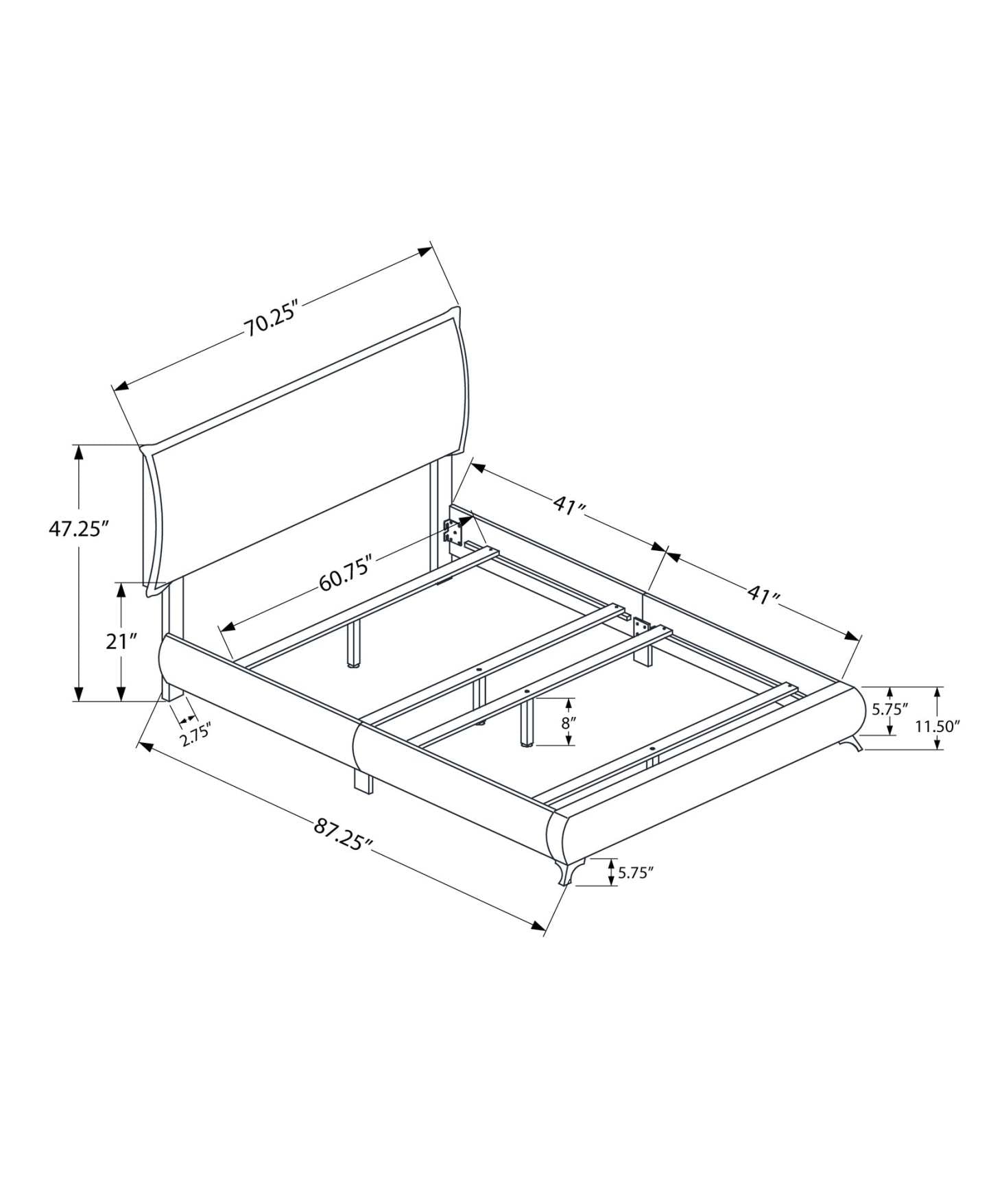 Start your bedroom do-over with this casual yet contemporary designed queen sized upholstered platform bed frame. The clean understated elegance of the padded slip-cover style grey linen headboard, and the low profile frame supported by chic chrome metal legs gives the bed a subtle modern retro look blending effortlessly with any decor style. The box spring and mattress is not included and must be purchased separately. We recommend a 2 inch low profile box spring. All parts and assembly instructions are included.