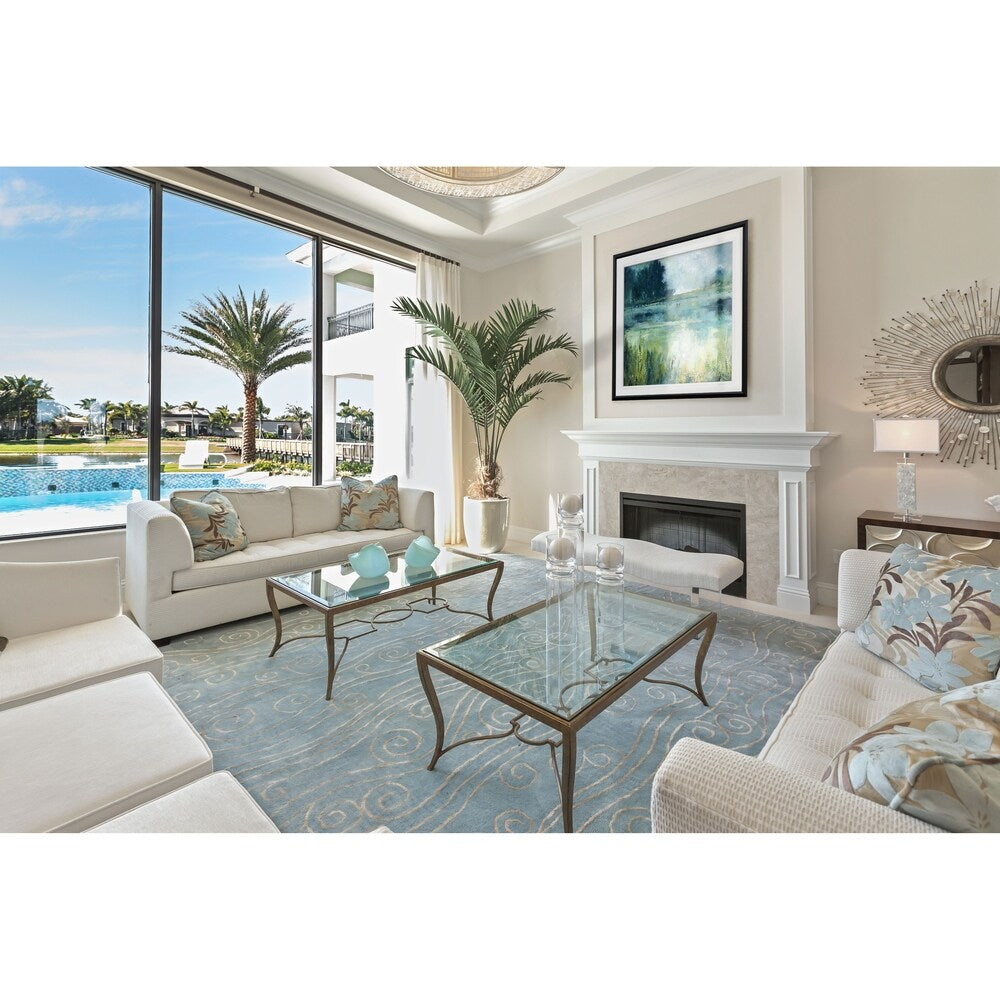 Reflets Edge - Impression encadrée sur mesure - bleu, blanc, gris, jaune, vert, argent, or