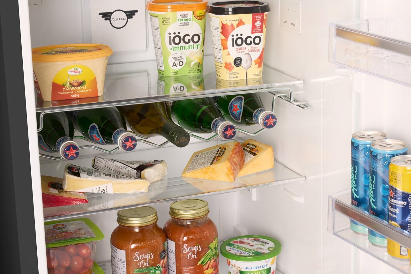 Apportez une touche de couleur et un style vintage à votre cuisine avec ce réfrigérateur unique à congélateur supérieur. Profitez de caractéristiques telles que des étagères en verre réglables, un porte-bouteilles, des bacs à légumes à humidité contrôlée, des filtres UltraFresh et bien plus encore. Un panneau de contrôle numérique, une alarme de porte et un éclairage LED lumineux ajoutent une commodité quotidienne, tandis que les accents chromés et les lignes épurées complètent le look élégant et accrocheur. De plus, avec un refroidissement sans givre et une certification Energy Star, il offre une efficacité moderne enveloppée dans un design rétro nostalgique.