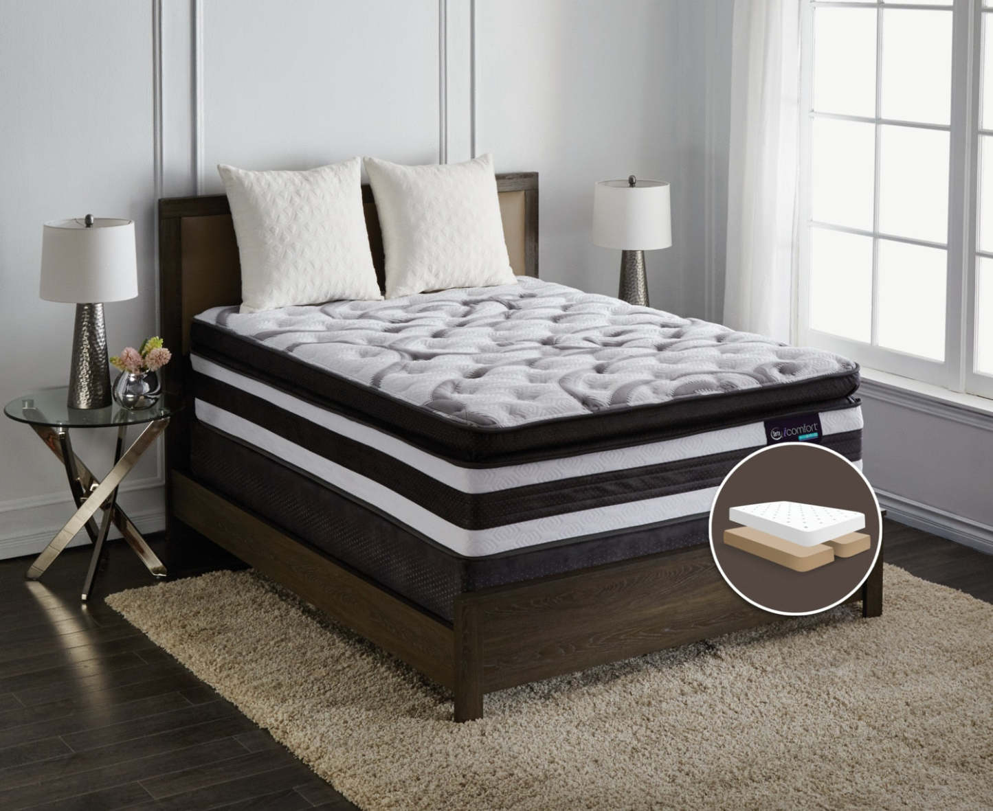Serta iComfort® Manolo Medium Super Pillow-Top Split Queen Mattress Set|Ensemble semi-ferme à plateau-coussin épais divisé Manolo iComfort de Serta pour grand lit