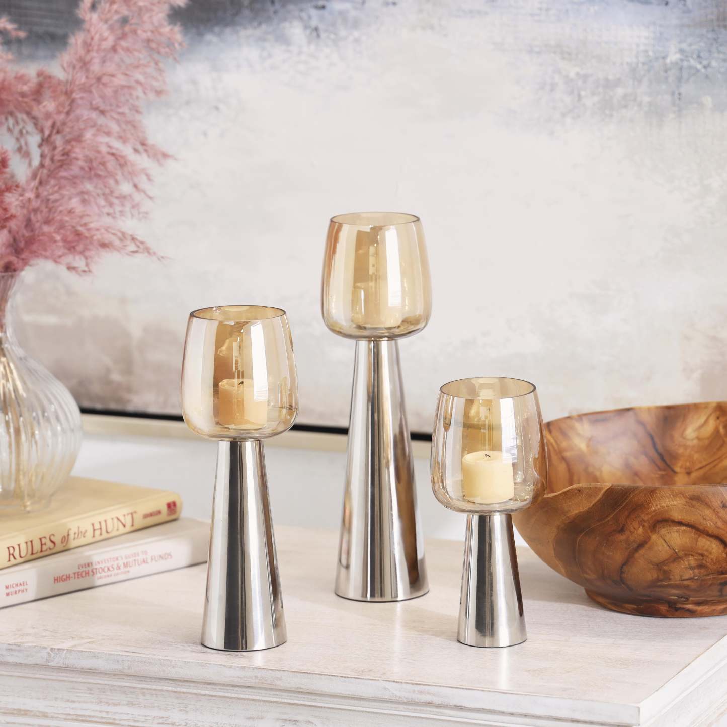 Bougeoir en verre et acier inoxydable 8/10/12 - Ensemble de 3|Bougeoir de 8 po/10 po/12 po en verre et acier inoxydable - ensemble de 3