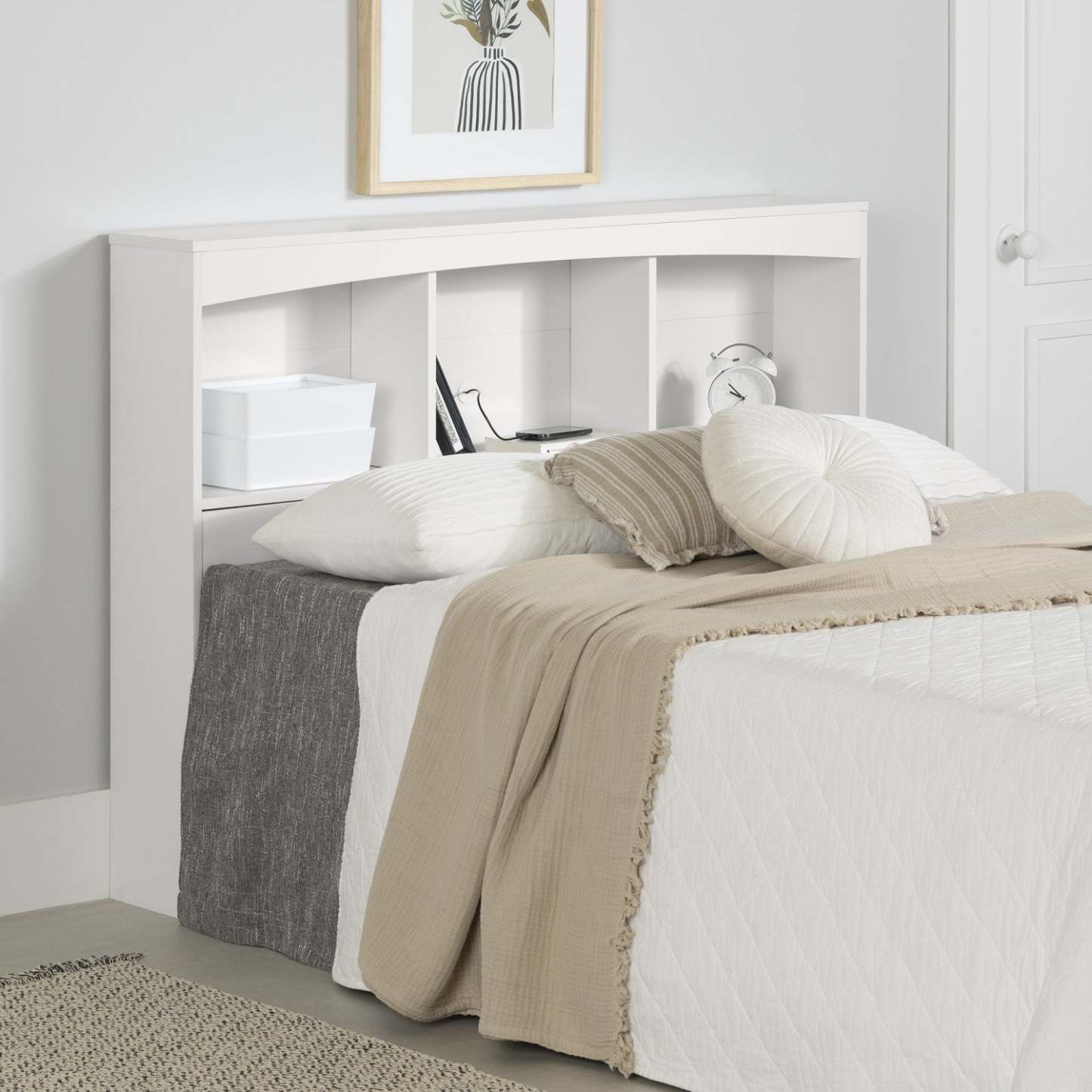 Tête de lit bibliothèque Step One avec rangement - Blanc pur | Step One Tête de lit bibliothèque - Blanc massif