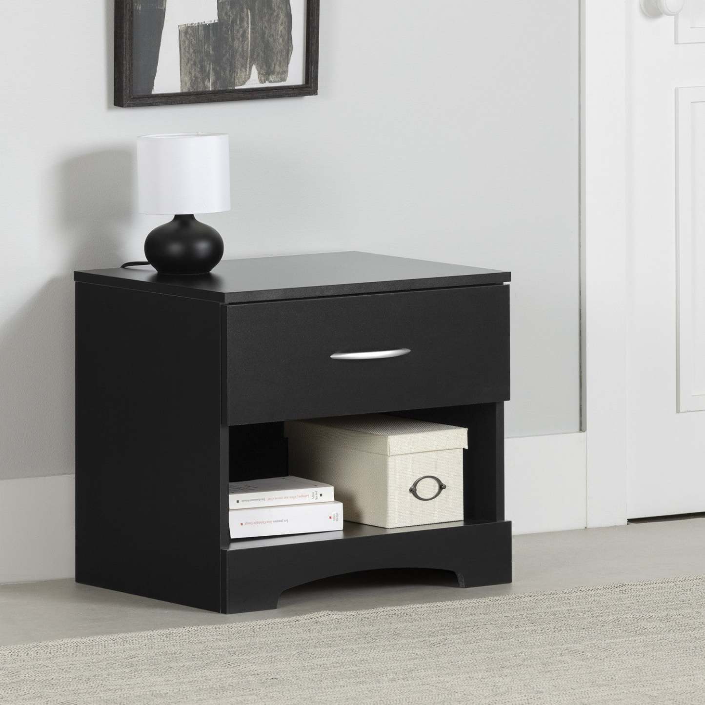 Step One Table De Chevet 1 Tiroir - Table D'Appoint Avec Rangement - Noir Pur | Table de nuit à 1 tiroir Step One - Noir massif
