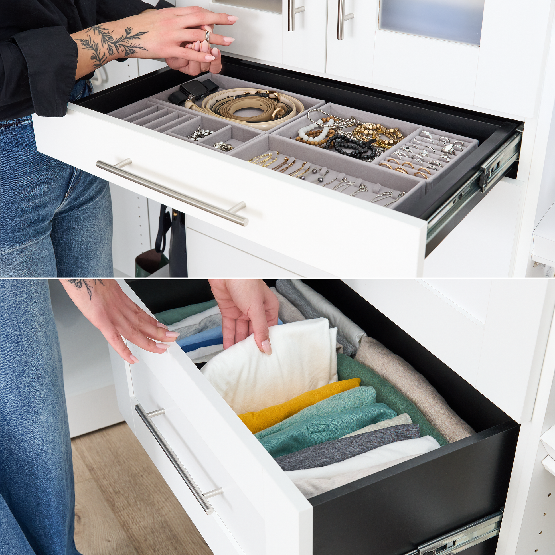 Profitez de la liberté de concevoir votre dressing de rêve avec le système de dressing modulaire Bestar Florence 100W x 25D avec éclairage LED, barres, étagères, tiroirs et portes de style shaker. Imaginez créer l'espace que vous souhaitez, juste dans l'espace que vous avez. Un espace qui garde vos affaires organisées et faciles à trouver — afin que votre pull préféré ne soit pas caché, mais juste là où vous en avez besoin. Avec 16 étagères réglables, 8 tiroirs à fermeture douce et glissière fluide, 4 portes en verre dépoli à fermeture automatique et 5 barres à vêtements réglables, vous pouvez adapter votre rangement à vos besoins — que vous maximisiez l'espace de rangement pour les essentiels pliés ou que vous ajoutiez de l'espace pour suspendre des vêtements. Il est conçu pour vous aider à ajouter, séparer et réorganiser chaque composant afin de rester ultra-organisé au fur et à mesure que la vie évolue. Cinq lumières LED rechargeables à détection de mouvement éclairent votre dressing avec facilité, tandis que la garniture shaker classique et les poignées en métal élégantes ajoutent une élégance intemporelle à votre dressing. Fabriqué à partir de matériaux éco-responsables, ce système incarne l'engagement de Bestar envers la durabilité et la qualité.