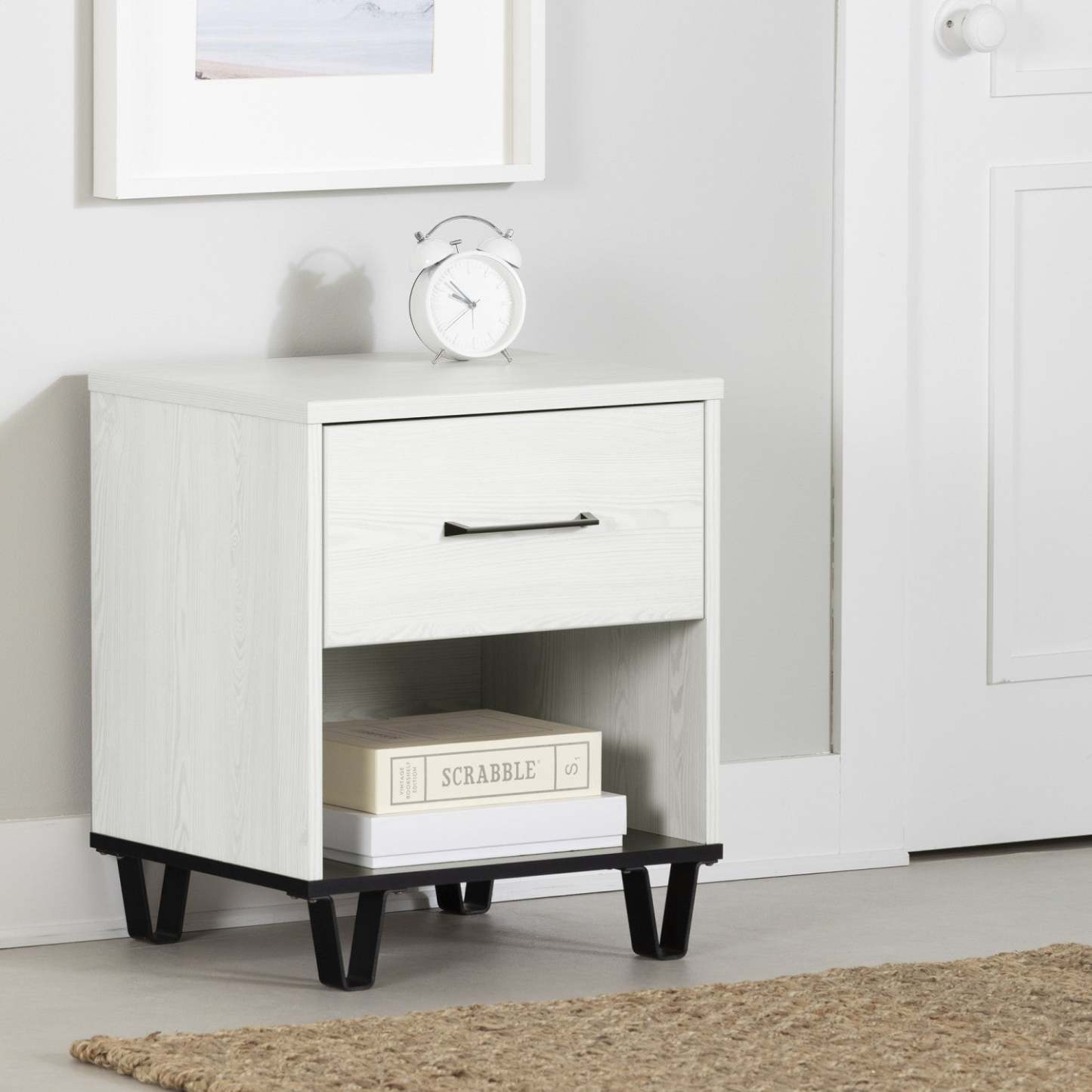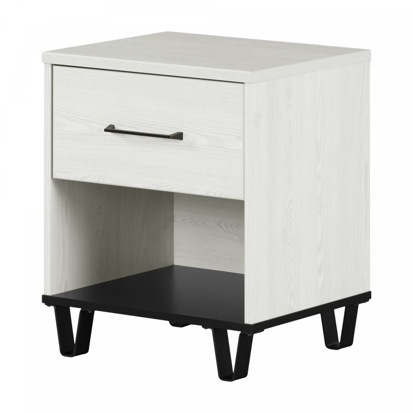 Table de nuit Arlen à 1 tiroir - pin blanc et noir mat