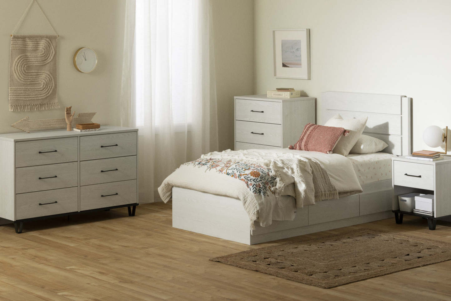 Vous voulez une table de chevet fonctionnelle et pratique pour la chambre de votre chéri ! Une fois placée à côté du lit, la surface supérieure peut accueillir une lampe de chevet et quelques objets décoratifs. L'espace ouvert peut être utilisé pour garder les livres des histoires du soir à portée de main, et le tiroir supérieur peut cacher toutes ces choses dont vous ne savez pas où les mettre, pour un aspect propre et ordonné. Ce meuble est une véritable mine d'or !