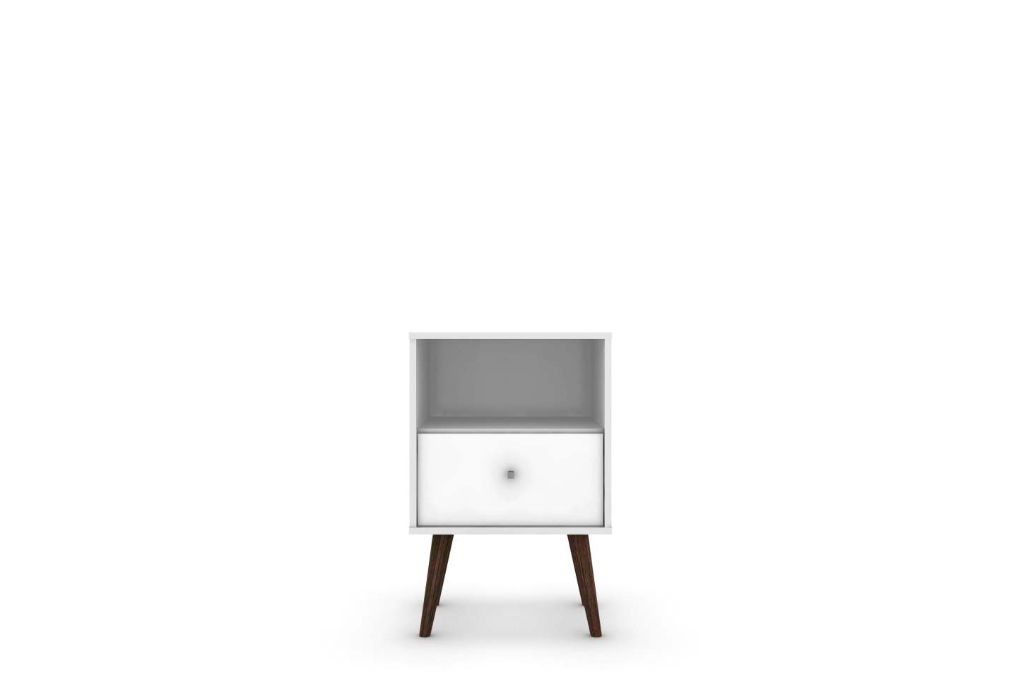 Table de nuit Liberty de Manhattan Comfort de style moderne du milieu du 20e siècle avec compartiment et tiroir - blanche
