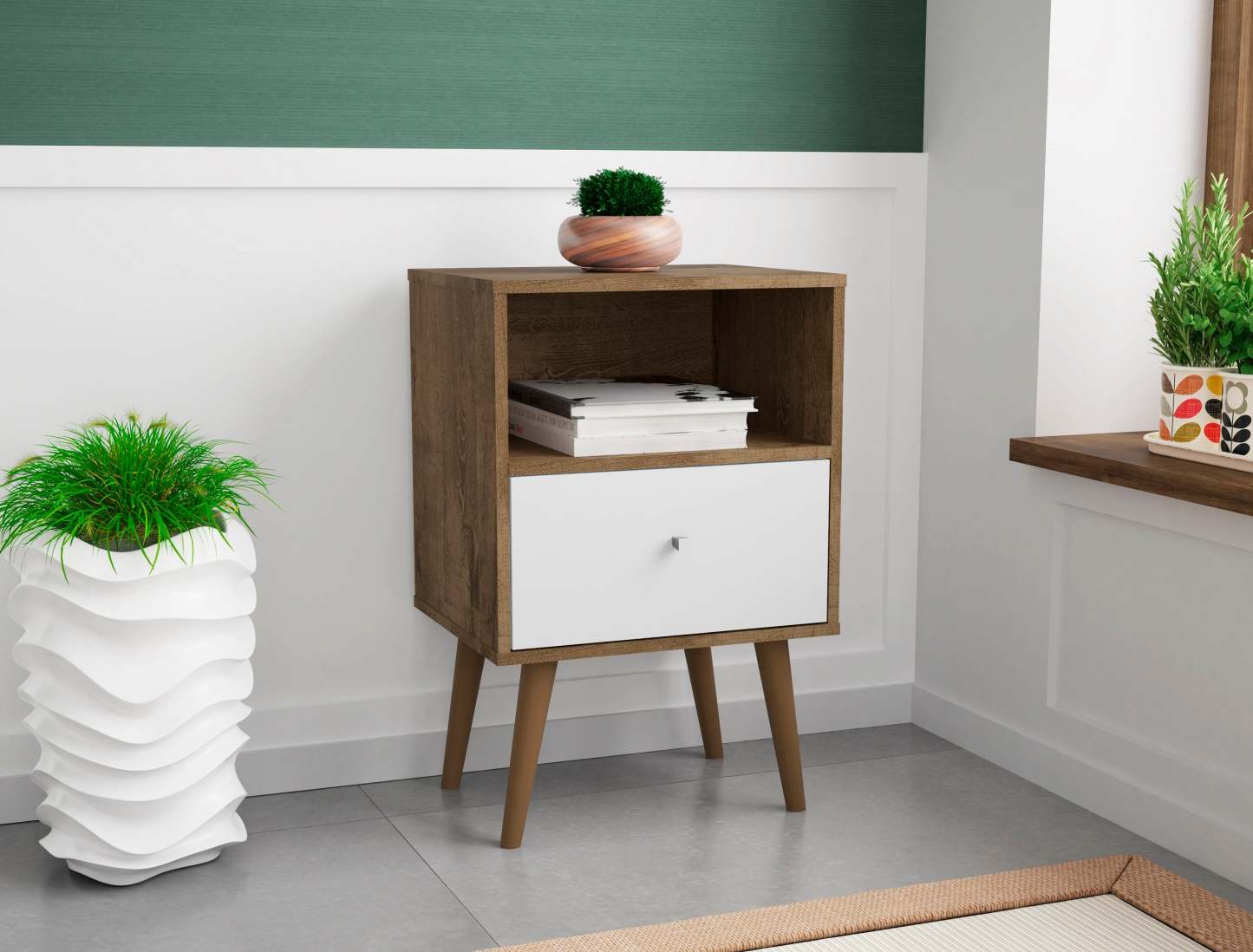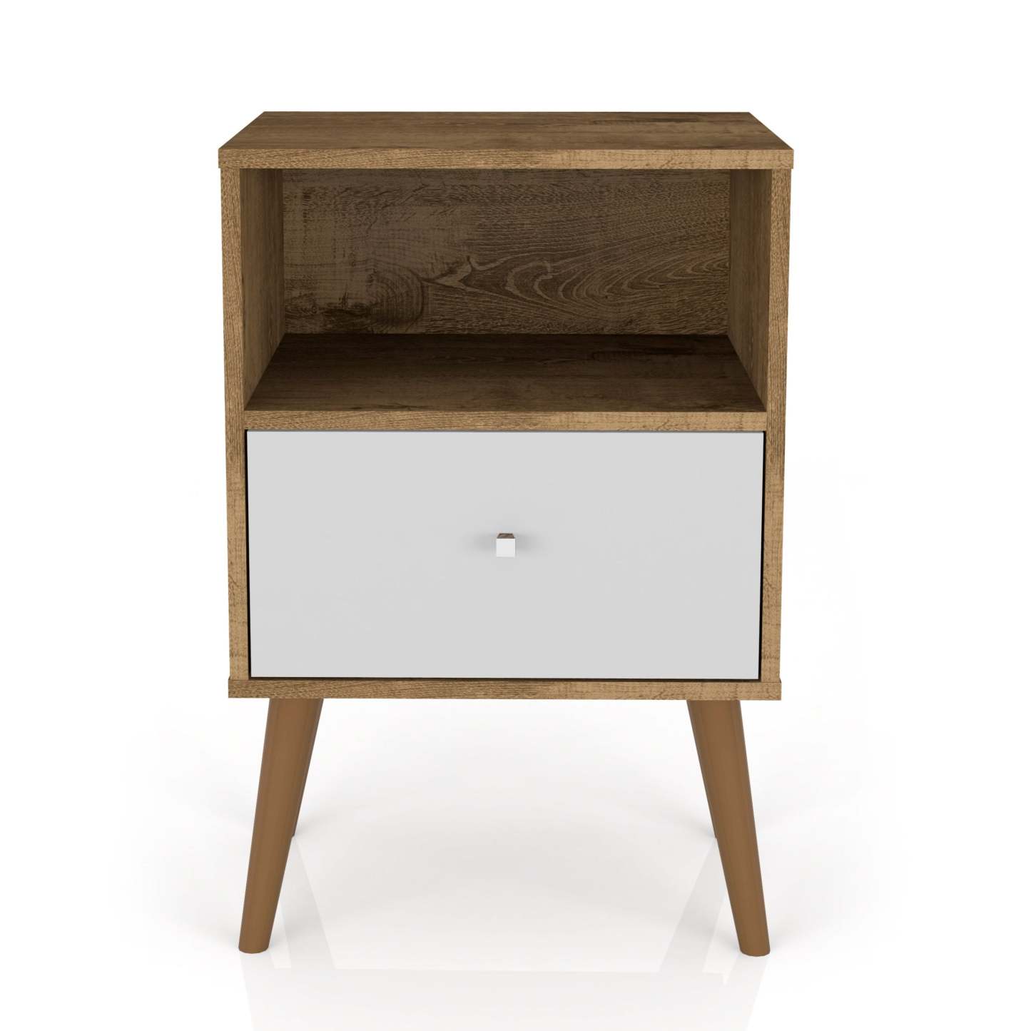 Table de nuit Liberty de Manhattan Comfort de style moderne du milieu du 20e siècle avec compartiment et tiroir - brun rustique et blanc