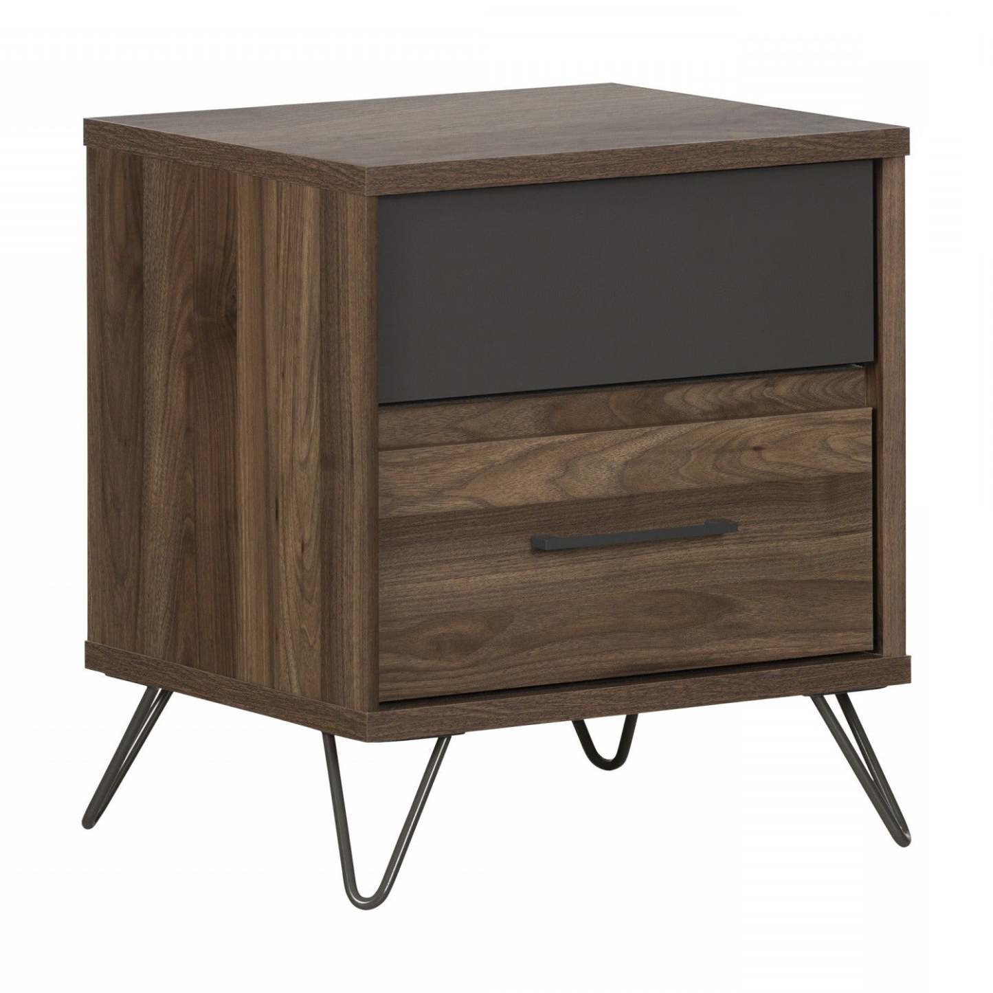 Table de nuit Olvyn à 2 tiroirs - noyer naturel et charbon