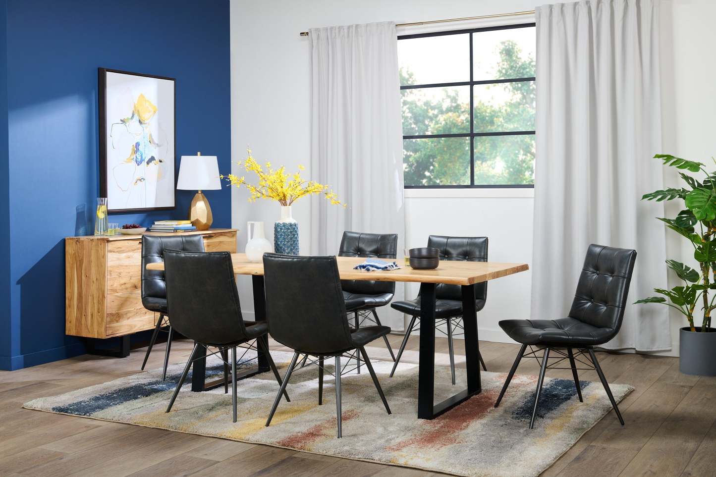 Table de salle à manger Oskar en bois d'acacia et métal, 79 po - naturelle et noire | Table de salle à manger Oskar, bois d'acacia et métal, 79 W - Naturel et noir
