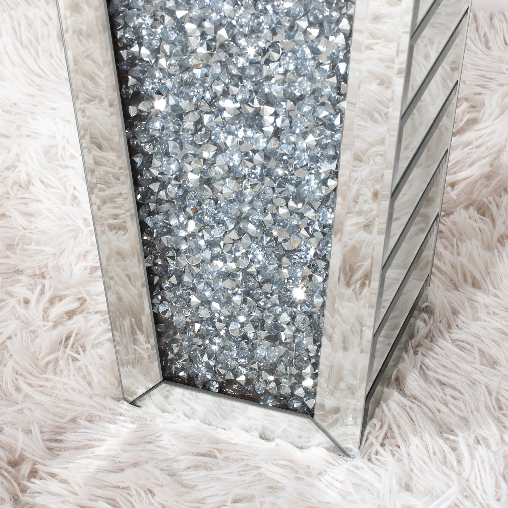 - Design glamour : un côté du vase miroir est incrusté de strass brillants. Il contribue à donner une impression d’espace et de luminosité à votre intérieur.