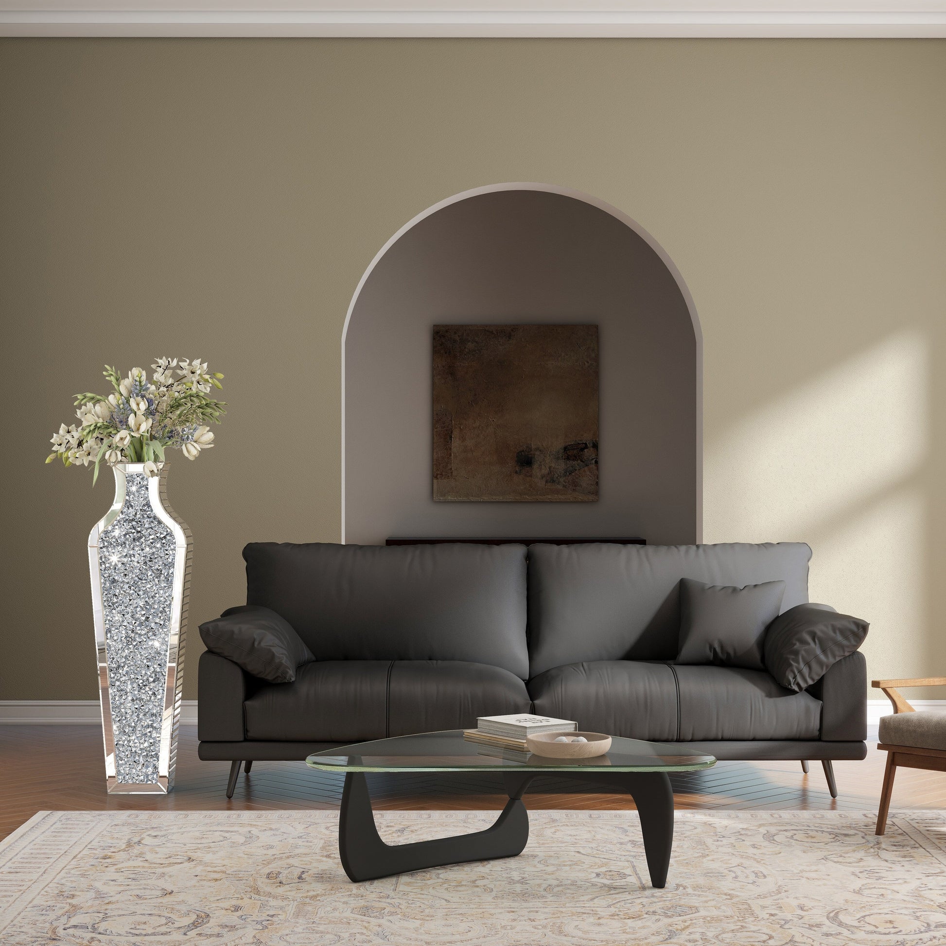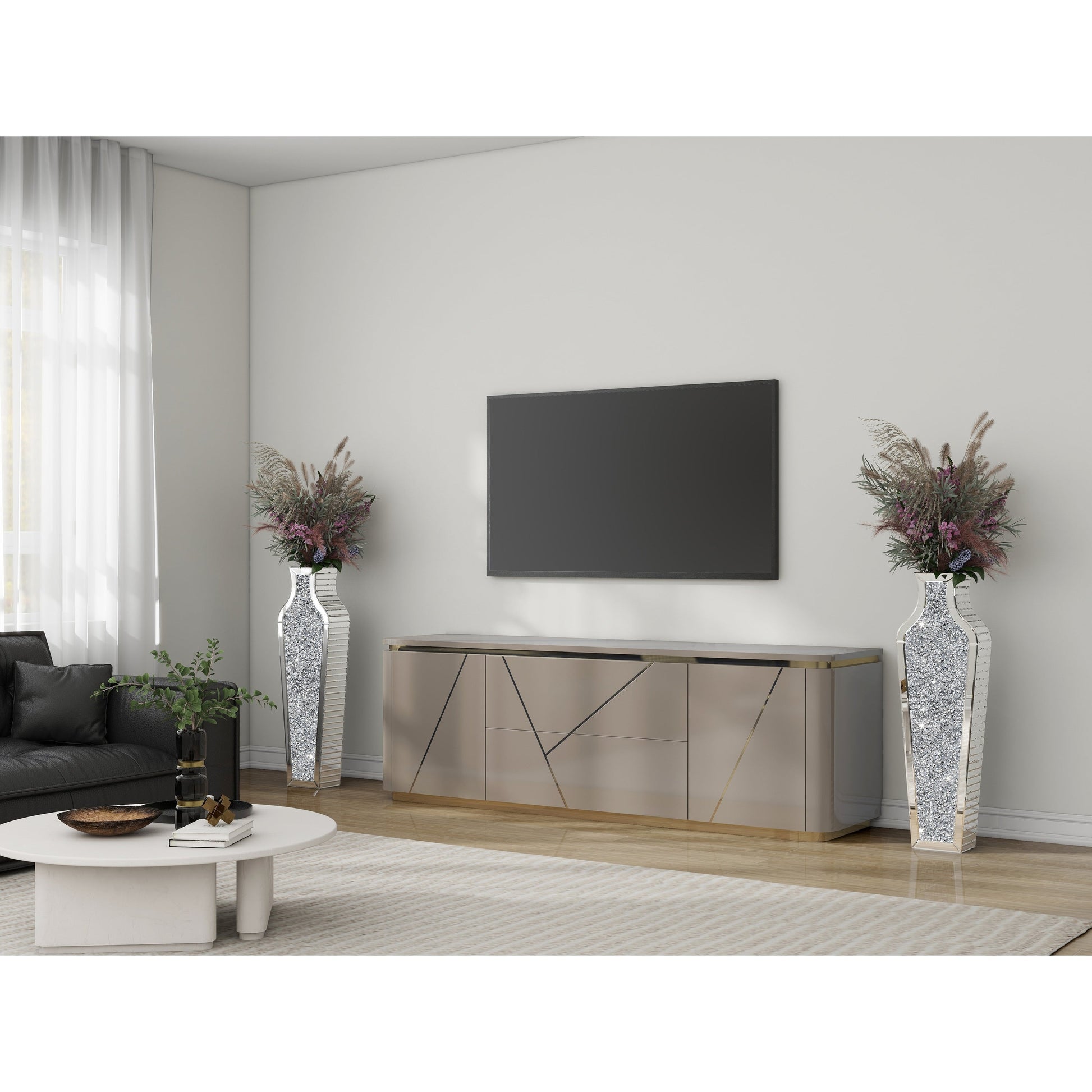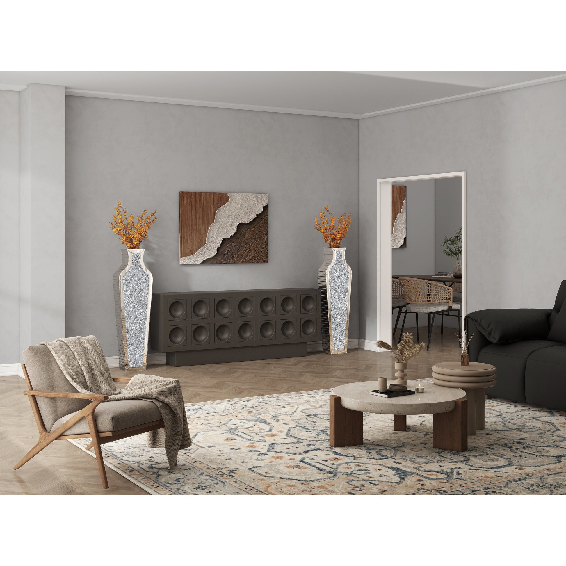 Si vous aimez décorer votre intérieur, ce vase de sol est le choix idéal. Il trouvera parfaitement sa place dans n'importe quel coin, notamment à l'entrée, près du meuble TV ou au centre du canapé. Son design se marie particulièrement bien avec les fonds unis, dans un décor élégant. Il apporte une touche d'originalité à une cheminée, une console ou tout autre espace de vie. Doté d'un couvercle en miroir et d'un corps en imitation diamant, ce vase de sol décoratif, orné de fleurs et de plantes, illuminera votre intérieur d'une note de fraîcheur et de texture. Adapté à un usage intérieur, son style glamour lui confère un charme unique. Ce vase possède une ouverture de 11,7 cm et est disponible en plusieurs tailles : 68 cm, 91 cm et 109 cm (effet miroir argenté).