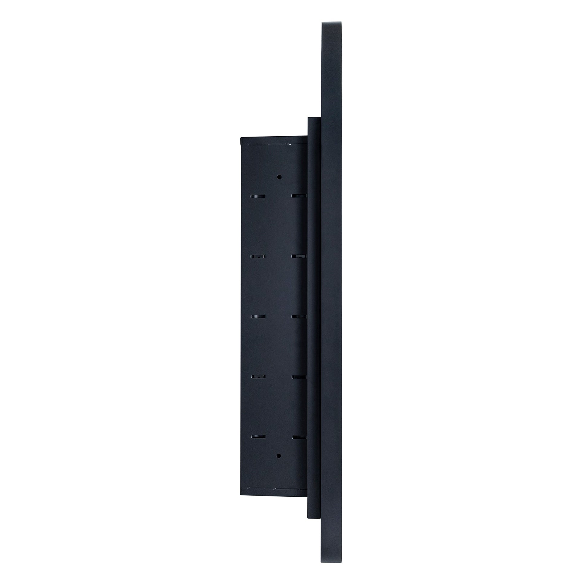 - Armoires à pharmacie cintrées à cadre métallique : portes en métal haut de gamme, finition noir mat. Charnières à fermeture automatique.
