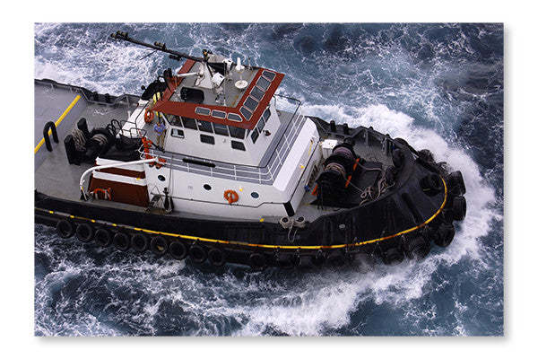 Remorqueur dans l'océan des Caraïbes : Cadre et panneau en tissu 16 x 24 po | Remorqueur dans l'océan des Caraïbes 16 po x 24 po : Cadre d'art mural et panneau de tissu | D44GLV37