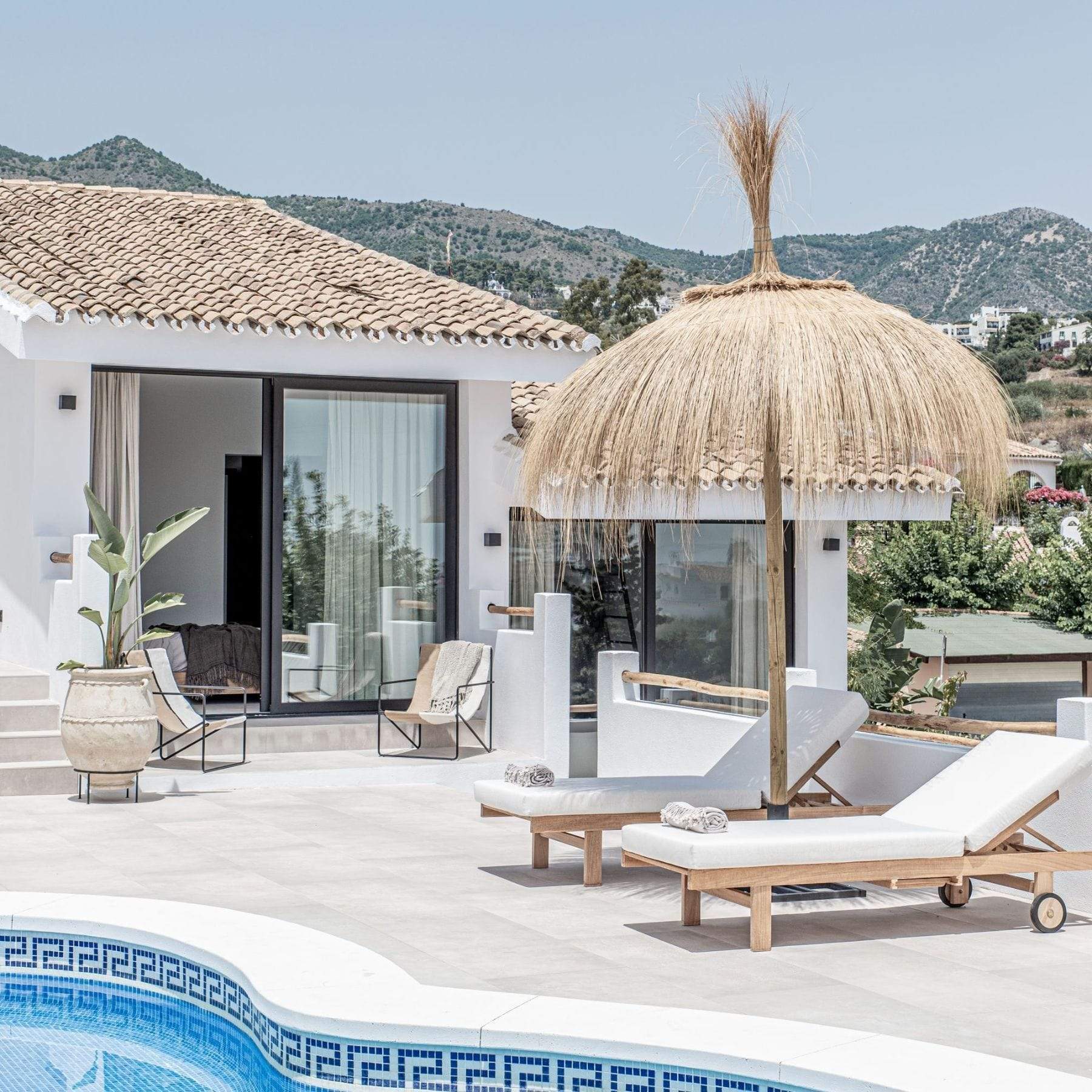 Allongez-vous et détendez-vous sur le transat en teck Tulum avec son coussin blanc .