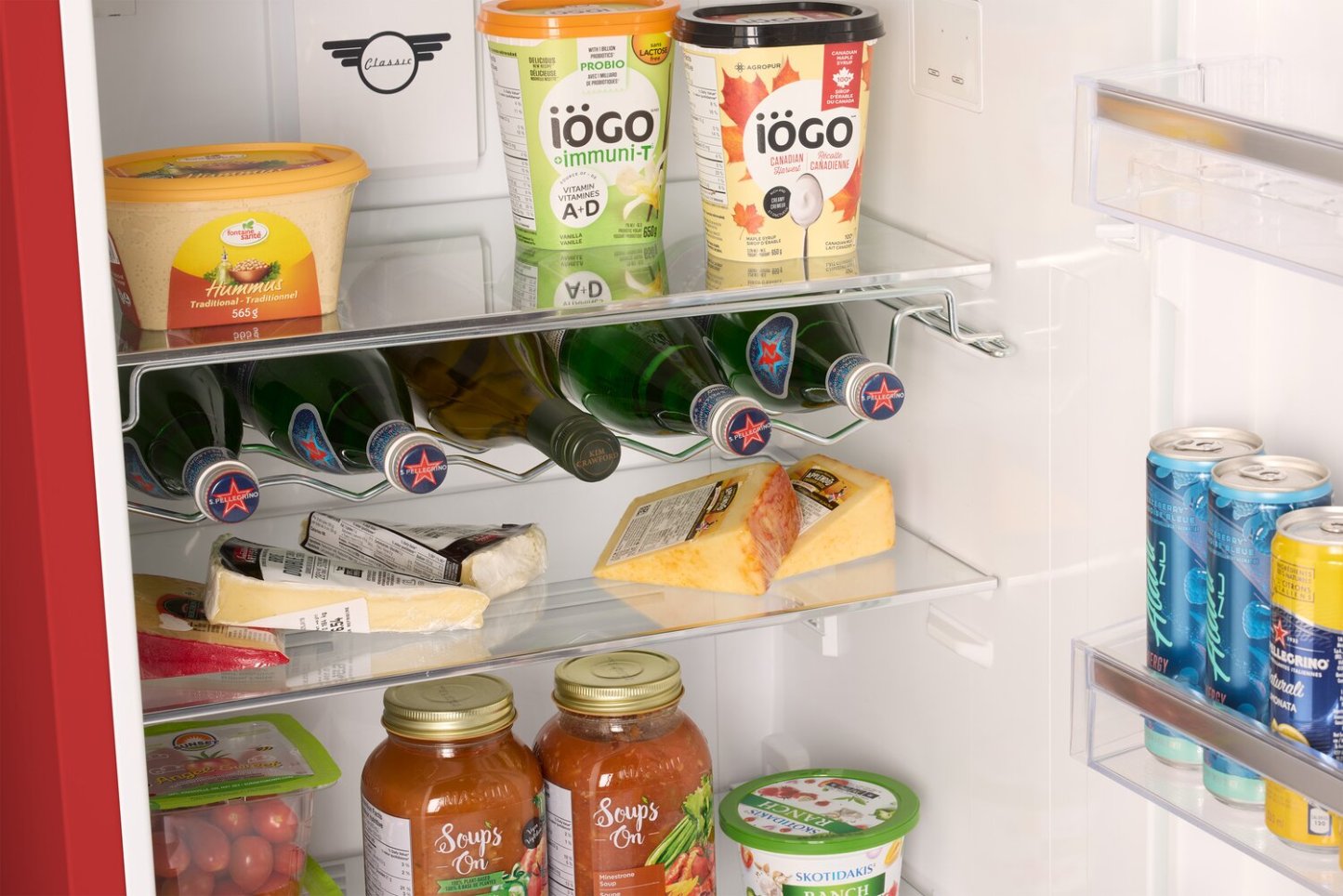 Apportez une touche de couleur et un style vintage à votre cuisine avec ce réfrigérateur unique à congélateur supérieur. Profitez de caractéristiques telles que des étagères en verre réglables, un porte-bouteilles, des bacs à légumes à humidité contrôlée, des filtres UltraFresh et bien plus encore. Un panneau de contrôle numérique, une alarme de porte et un éclairage LED lumineux ajoutent une commodité quotidienne, tandis que les accents chromés et les lignes épurées complètent le look élégant et accrocheur. De plus, avec un refroidissement sans givre et une certification Energy Star, il offre une efficacité moderne enveloppée dans un design rétro nostalgique.