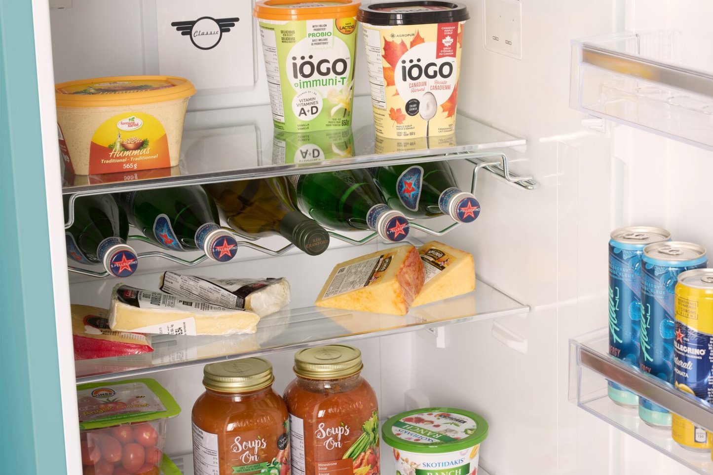 Apportez une touche de couleur et un style vintage à votre cuisine avec ce réfrigérateur unique à congélateur supérieur. Profitez de caractéristiques telles que des étagères en verre réglables, un porte-bouteilles, des bacs à légumes à humidité contrôlée, des filtres UltraFresh et bien plus encore. Un panneau de contrôle numérique, une alarme de porte et un éclairage LED lumineux ajoutent une commodité quotidienne, tandis que les accents chromés et les lignes épurées complètent le look élégant et accrocheur. De plus, avec un refroidissement sans givre et une certification Energy Star, il offre une efficacité moderne enveloppée dans un design rétro nostalgique.