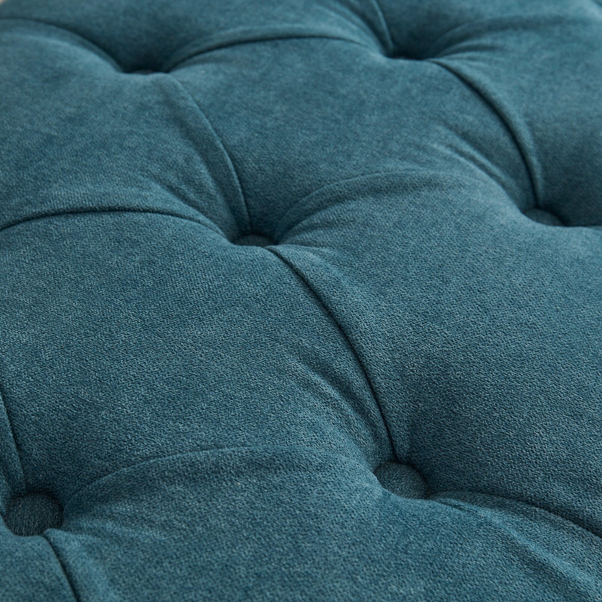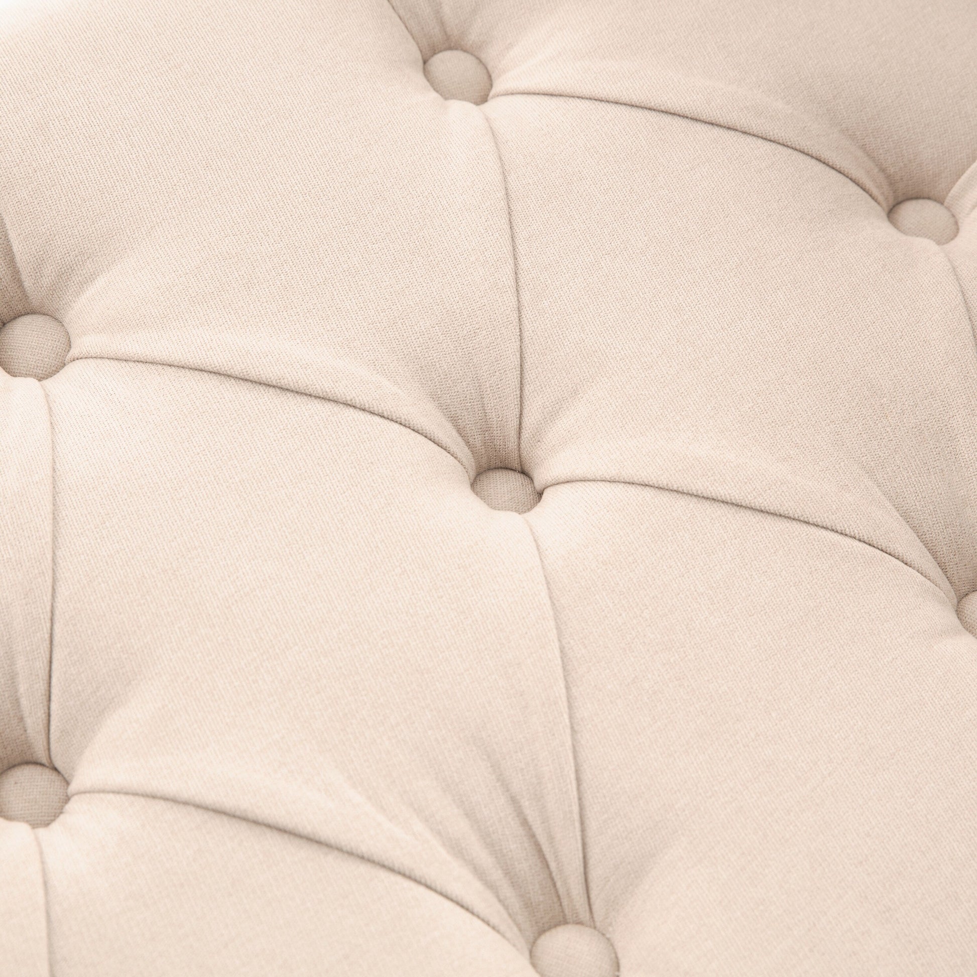 - Design élégant à rabat touffeté et accoudoirs roulés