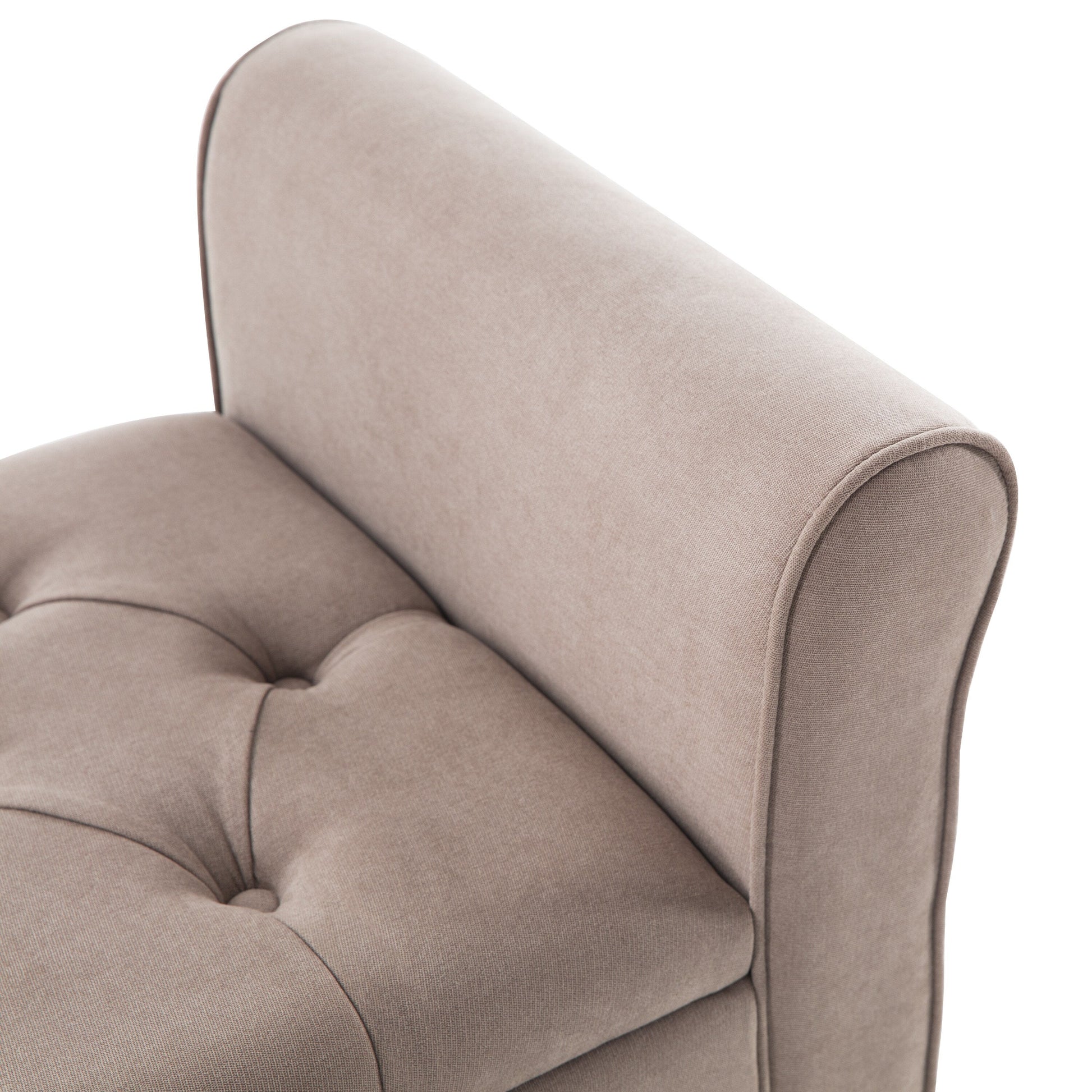 Cet élégant banc de rangement capitonné vous apportera surprise et bonheur ! Placez-le dans votre chambre ou votre salon, non seulement comme meuble, mais aussi pour embellir votre intérieur. Idéal pour votre famille et vos animaux de compagnie, il est doté d'accoudoirs simples et roulés pour une allure luxueuse. Ajoutez un coussin confortable sur le dessus et il se transformera en un adorable petit canapé. Revêtu d'un tissu polyester de haute qualité, il offre une assise douce et confortable. Son plateau capitonné rabattable ajoute une touche de sophistication tout en offrant un accès facile au vaste espace de rangement. Soutenu par de robustes pieds en bois, il est non seulement élégant, mais aussi durable et stable.