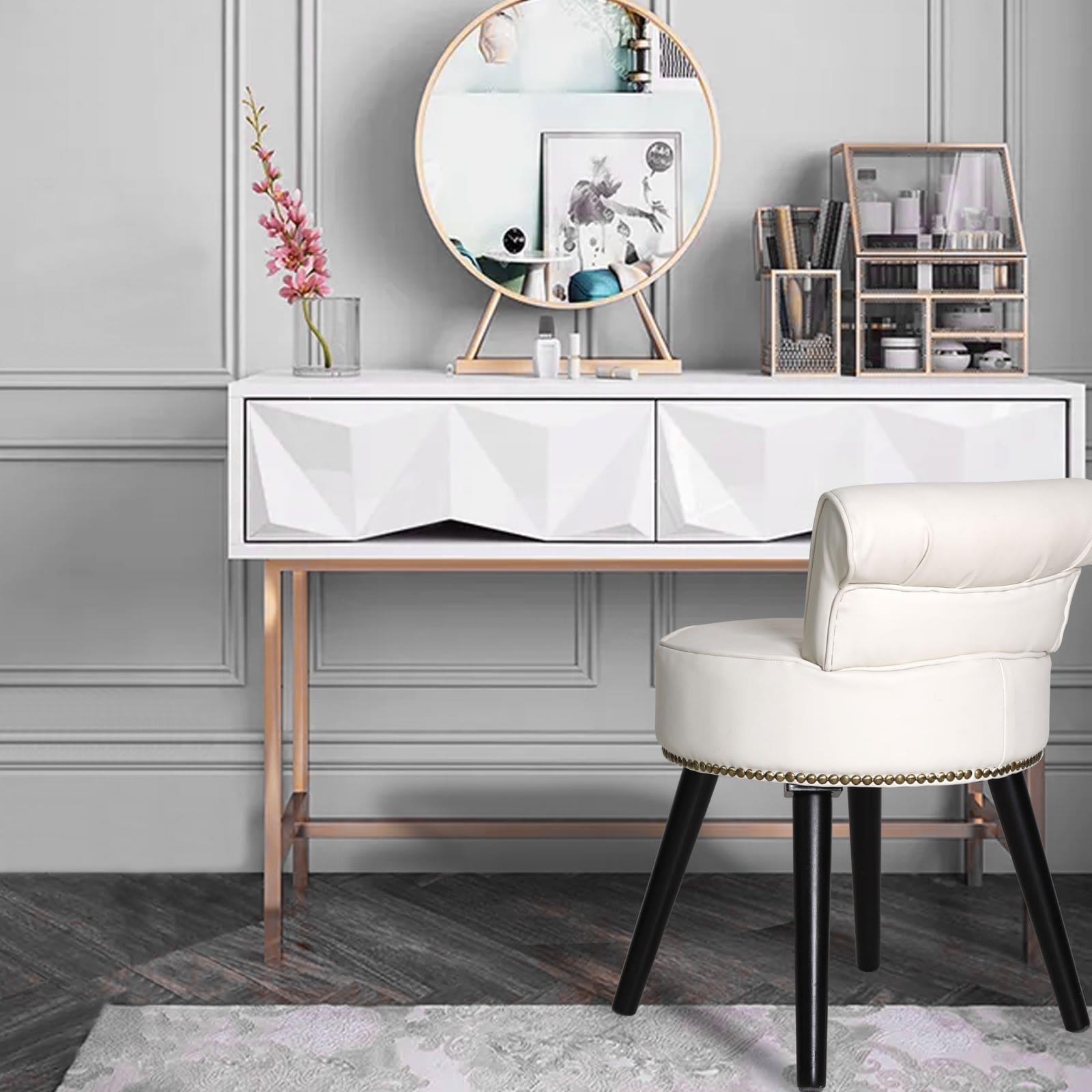 Tabouret de coiffeuse VEIKOUS avec dossier bas et pieds en bois - 17,3 x 15,7 x 25,1