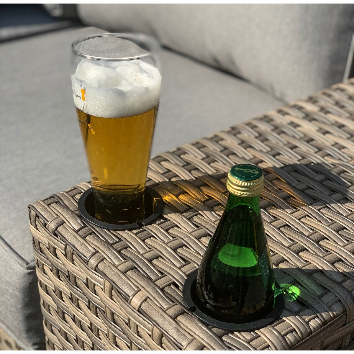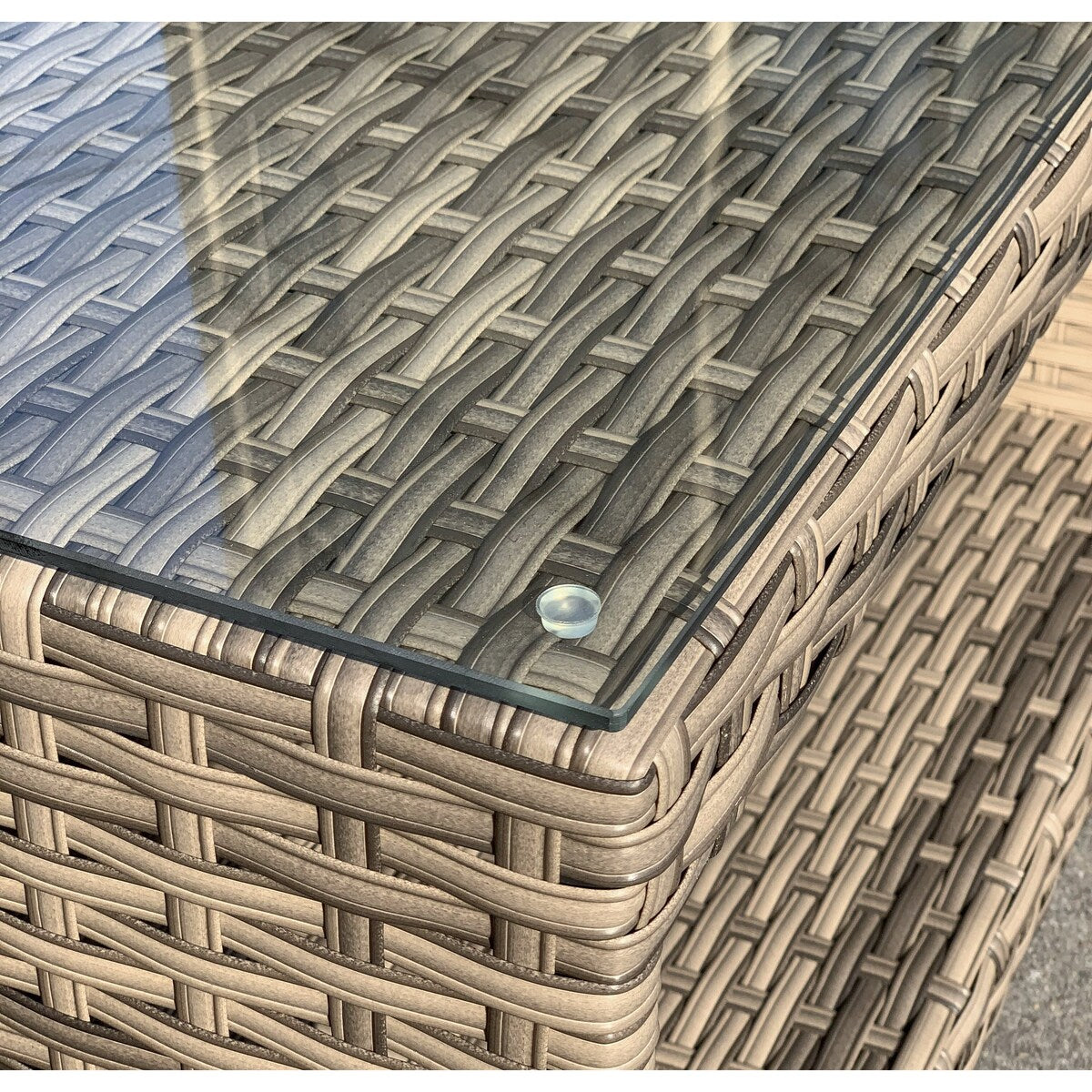Transformez votre espace extérieur en un havre de paix chaleureux avec l'ensemble Ventura 12 pièces. Fabriqué avec une structure en aluminium inoxydable robuste et durable, cet ensemble est à la fois léger et polyvalent. L'osier en résine tressée à la main, résistant aux intempéries, assure une résistance aux rayons UV, à l'humidité, à la moisissure et aux intempéries. L'ensemble comprend 2 fauteuils sans accoudoirs, 4 fauteuils à accoudoir simple, 2 fauteuils club, 2 poufs, 1 table d'appoint et 1 table avec plateau en verre trempé, tous conçus pour offrir un espace généreux pour se détendre et recevoir. Les fauteuils aux dimensions généreuses sont dotés d'accoudoirs larges et d'assises spacieuses pour un confort accru. Les coussins d'assise, d'une épaisseur de 1,5 m, sont composés d'une mousse résiliente enveloppée d'une feuille de polyester extra douce recouverte d'un tissu Olefin® durable. Avec l'ensemble Ventura 12 pièces, profitez d'un style contemporain et sophistiqué qui durera de nombreuses saisons.