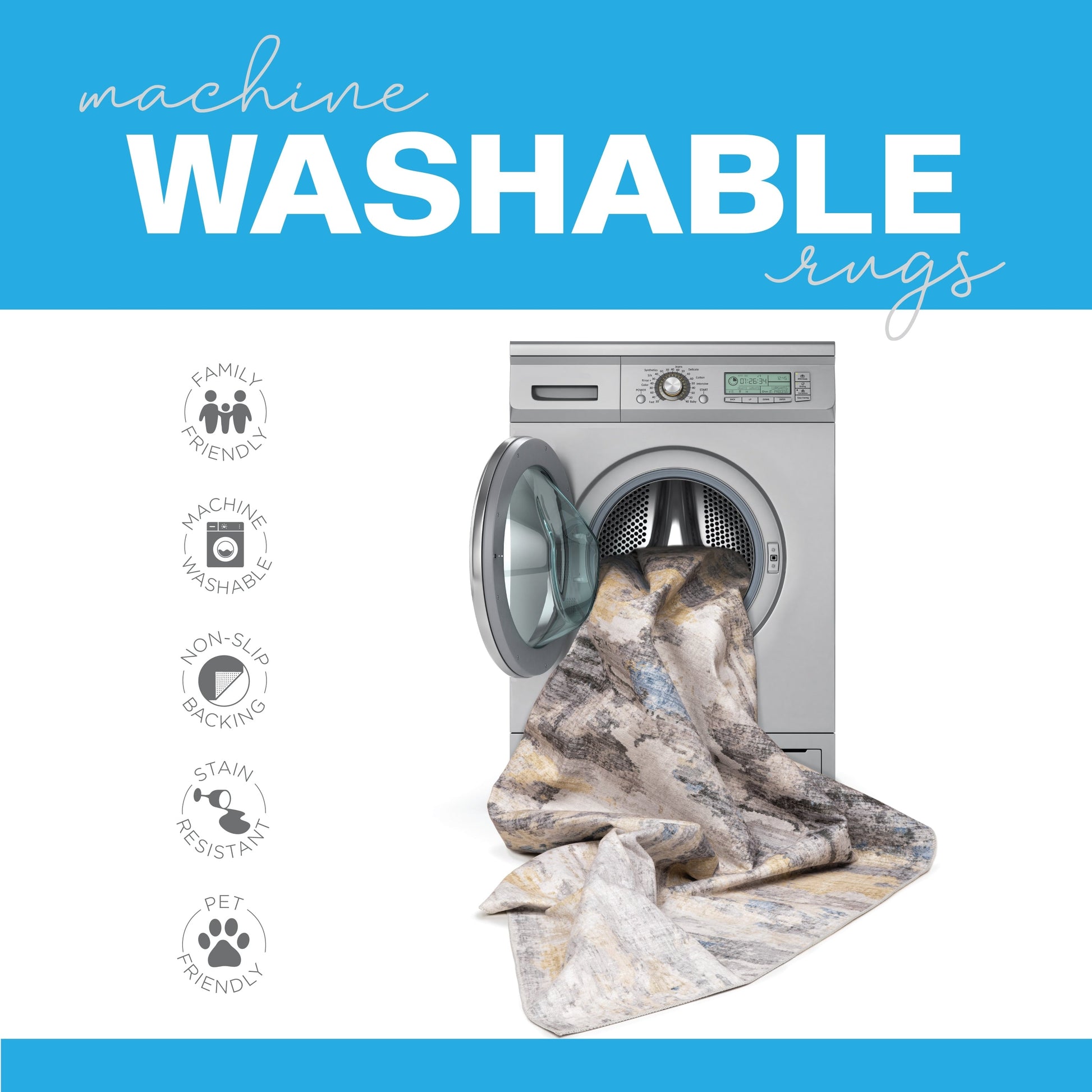 Tapis d'intérieur lavable Vista Home Marissa à motifs abstraits gris/bleus