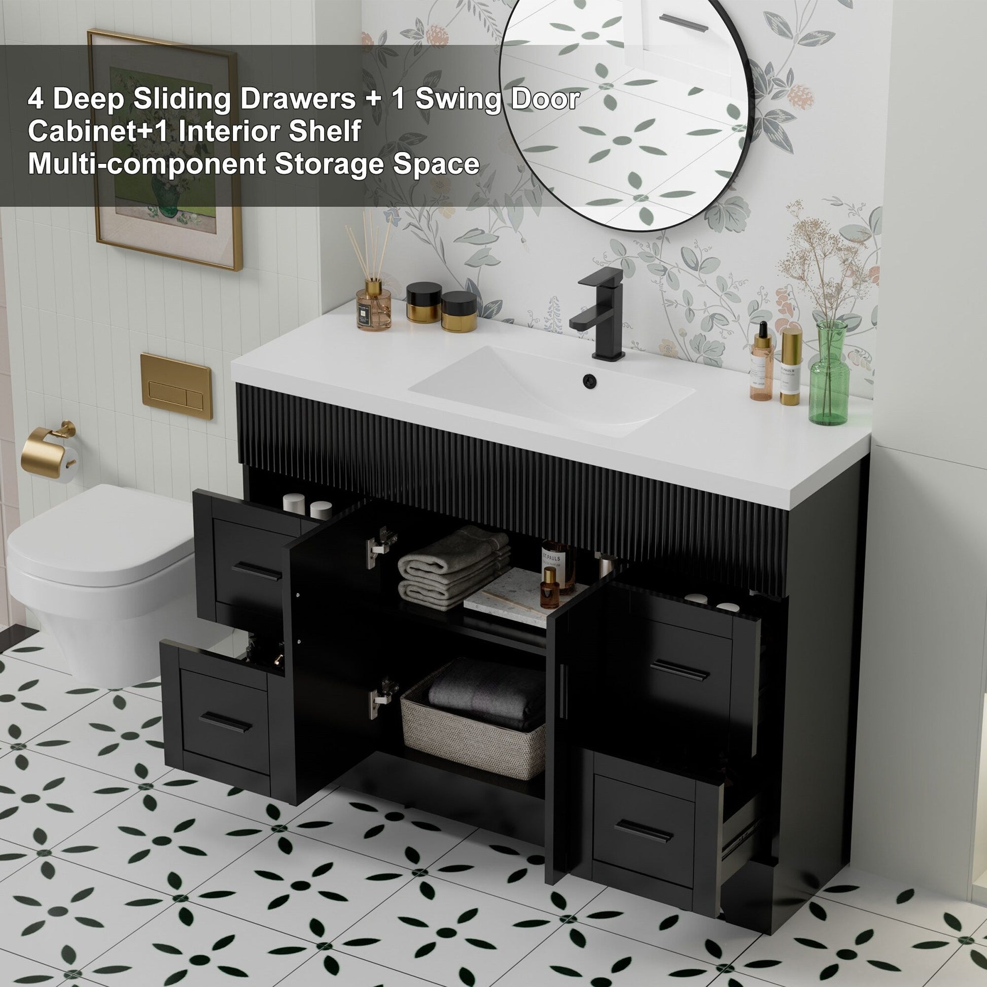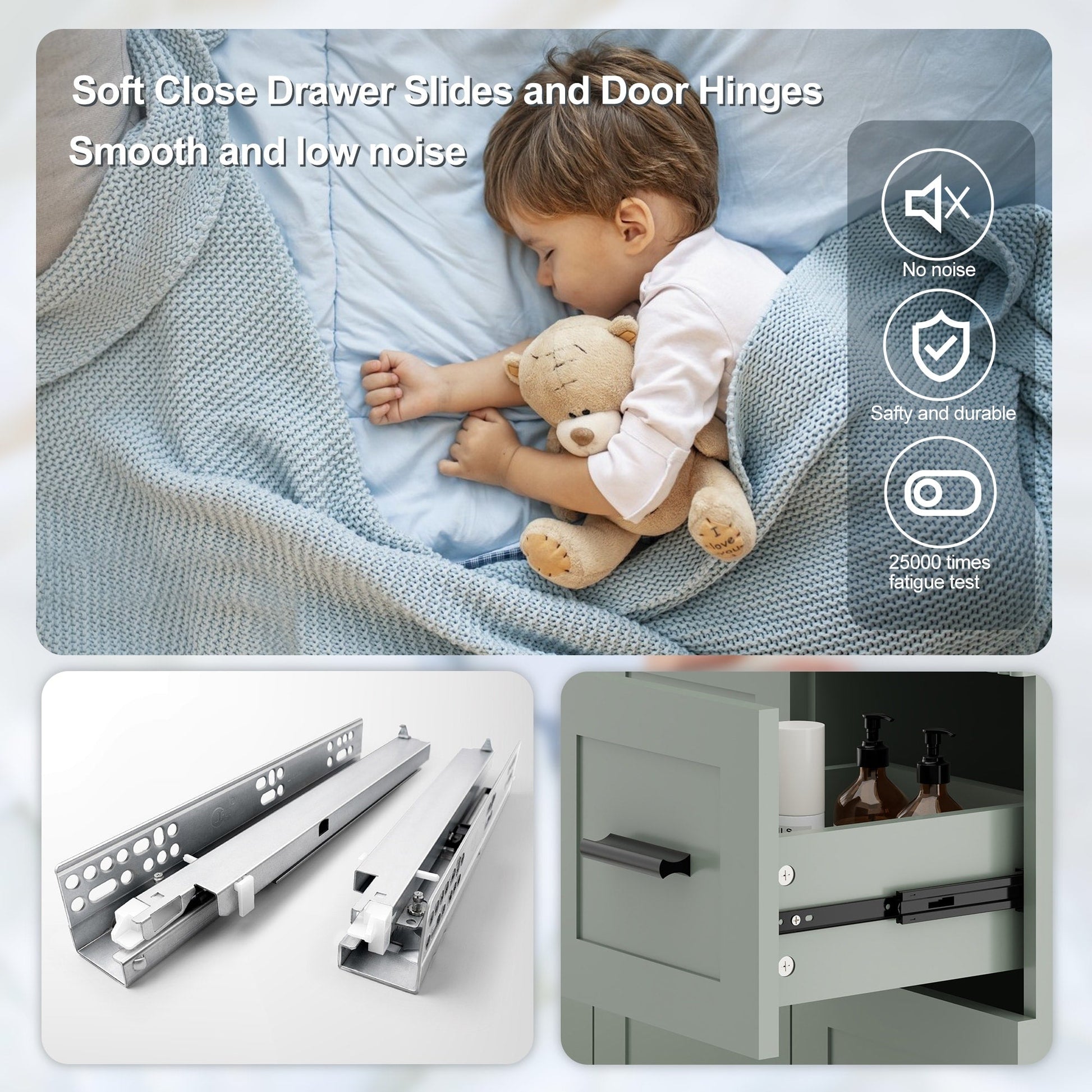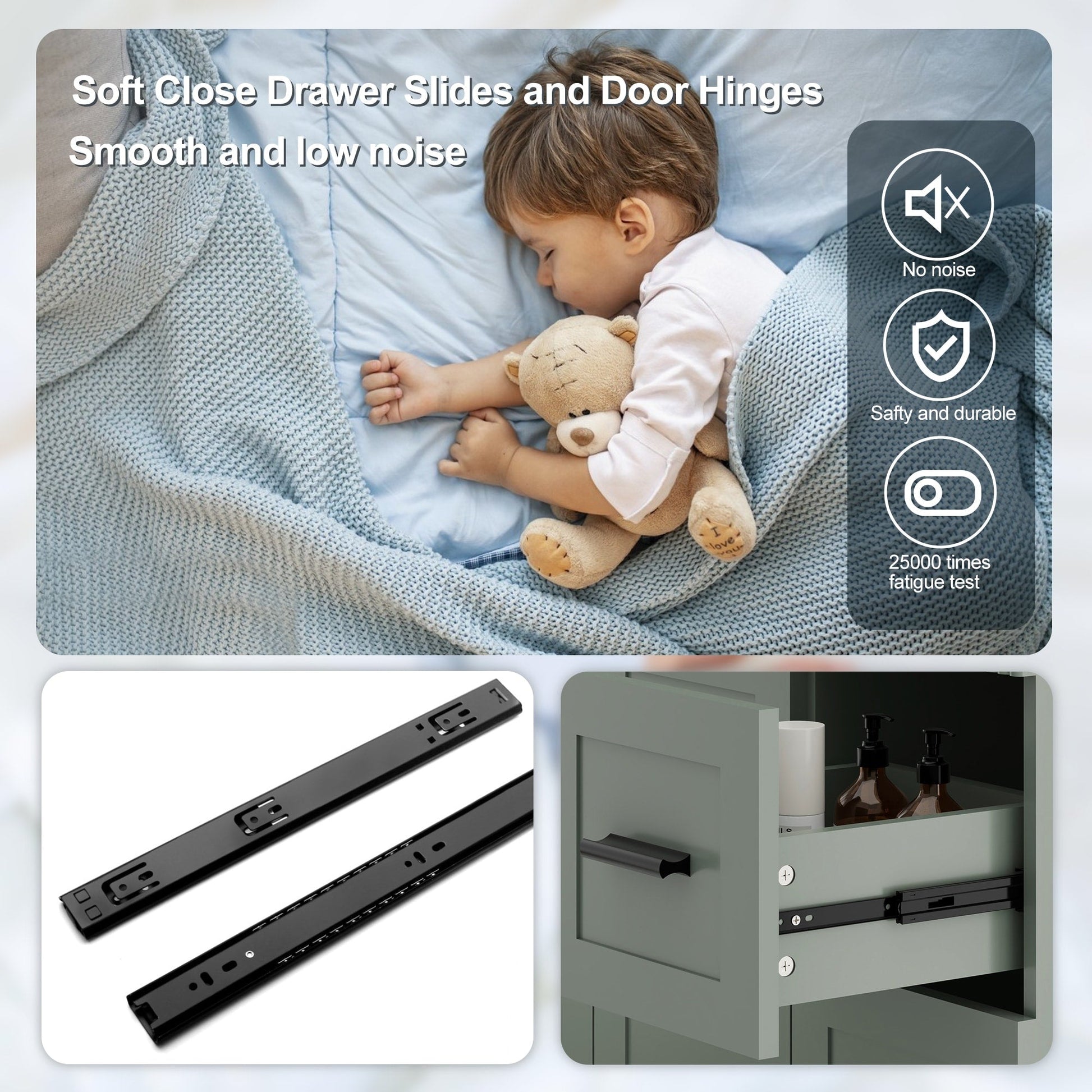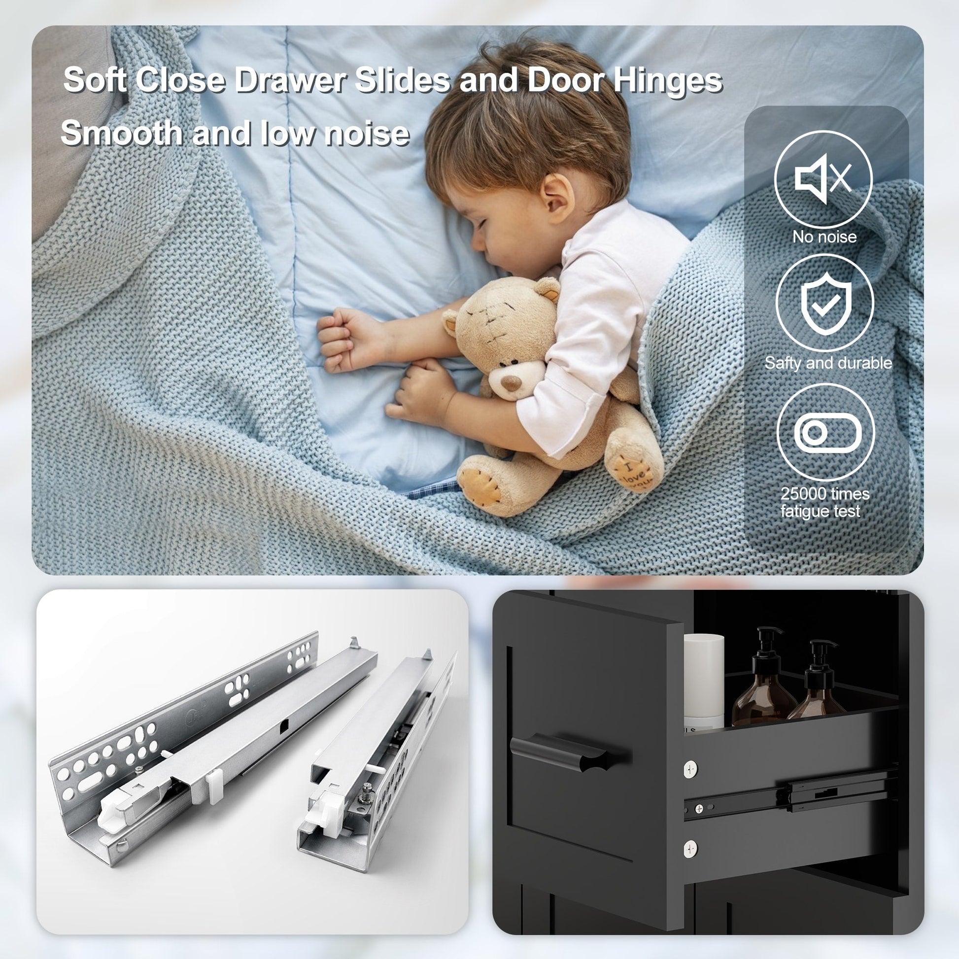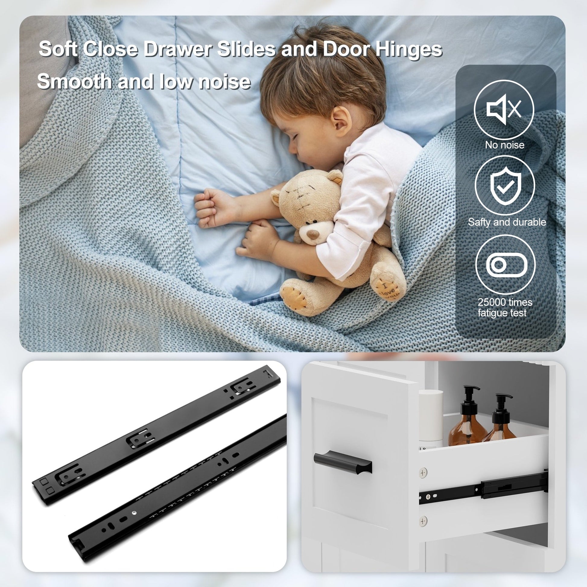 - Tiroirs à fermeture en douceur de qualité supérieure : les glissières sous plan en acier inoxydable (testées sur 25 000 cycles) garantissent un fonctionnement silencieux et fluide. 2 tiroirs spacieux + une étagère réglable permettent d'organiser les articles de toilette sans effort.