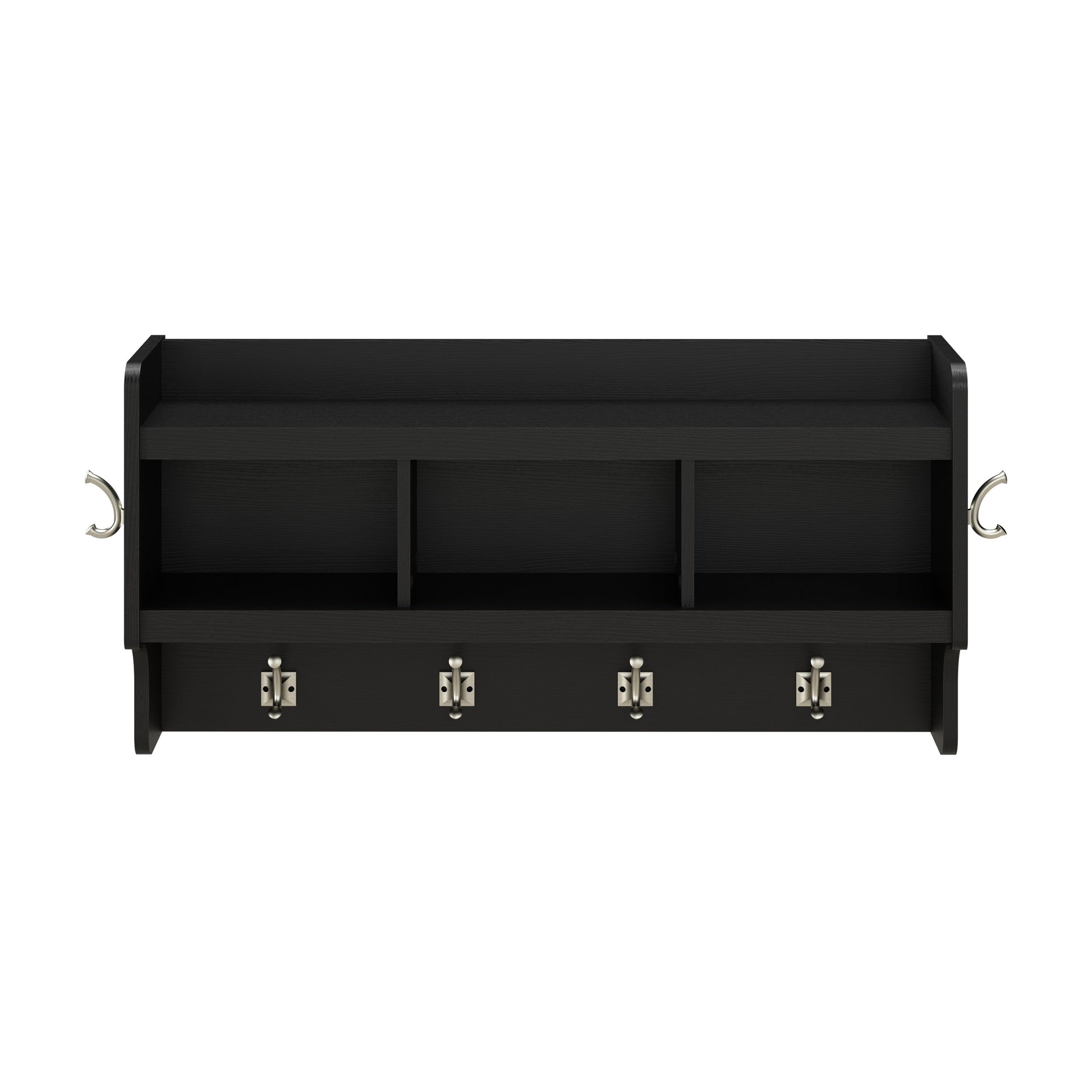 - L'étagère murale comprend quatre crochets à double broche à l'avant et un de chaque côté pour accrocher des vestes, des chapeaux, des écharpes et plus encore