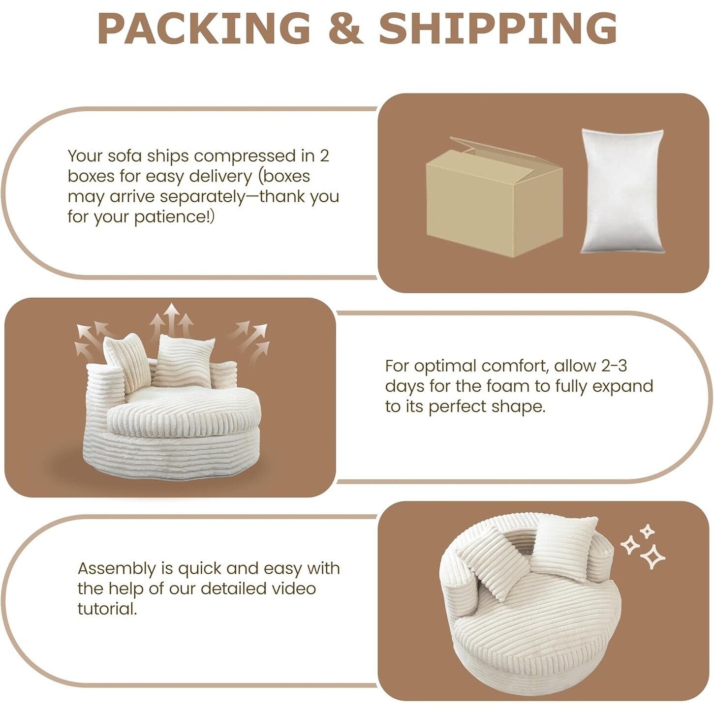 WOWMAX 47 Chaise longue ronde d'intérieur, canapé de sol rembourré en velours côtelé, fauteuil-lit surdimensionné avec 2 coussins décoratifs