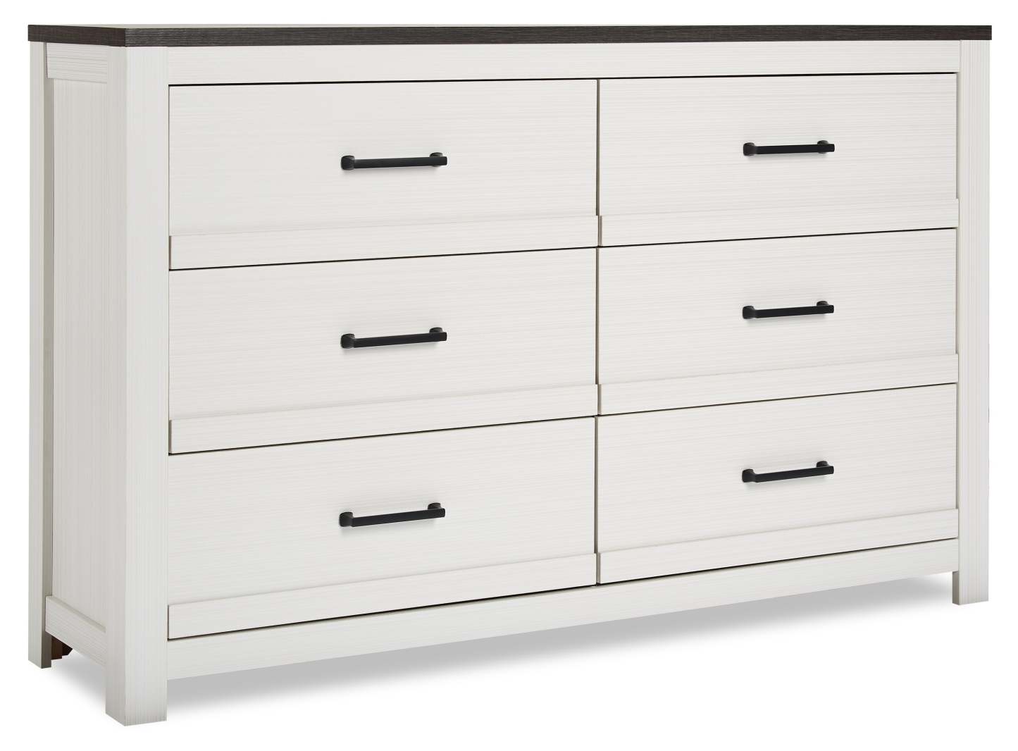 Zoey Bedroom 6-Drawer Dresser, 58.3W x 37.1H - Two-tone White & Brown | Commode Zoey de 58,3 po (L) x 37,1 po (H) à 6 tiroirs pour la chambre à coucher - deux teintes, blanc et brun